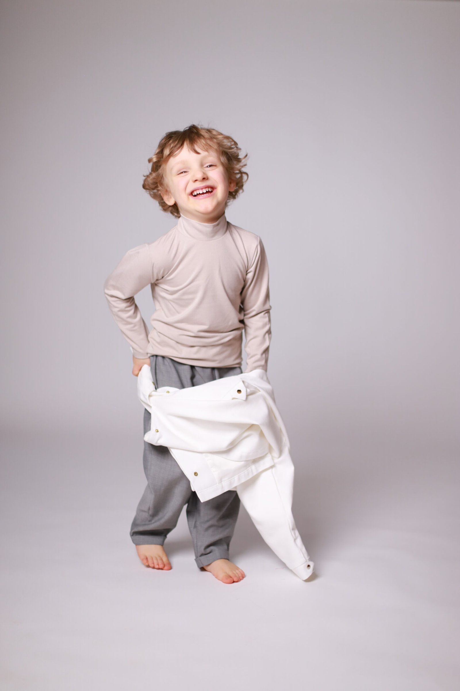 Marškinėliai ilgomis rankovėmis ir paaukštintu kakliuku iš bambuko audinio. Kad būtų patogu uždėti – nugaroje segami spaudėmis. Tamprūs, jaukūs ir malonūs, tarsi antra oda.