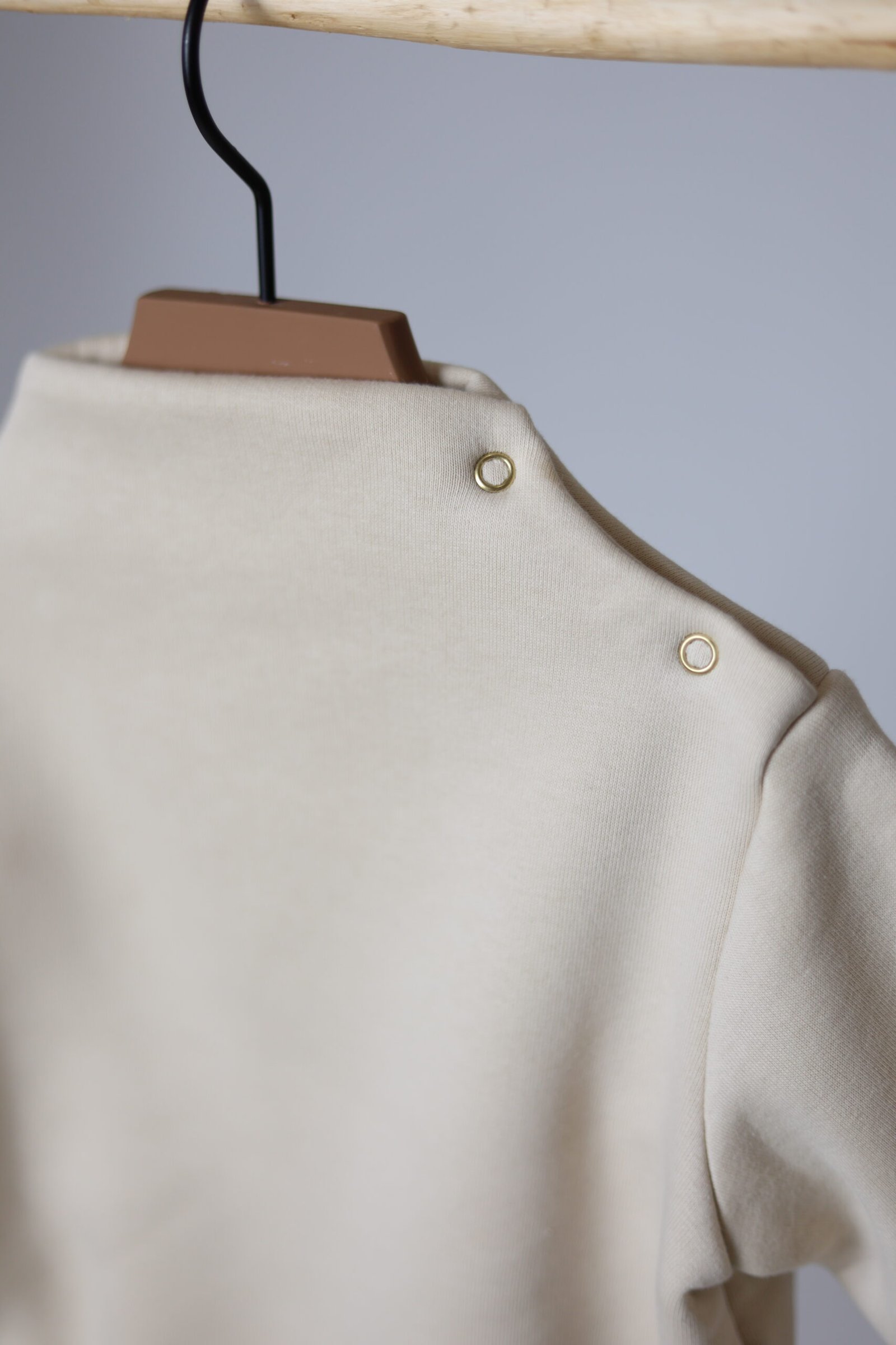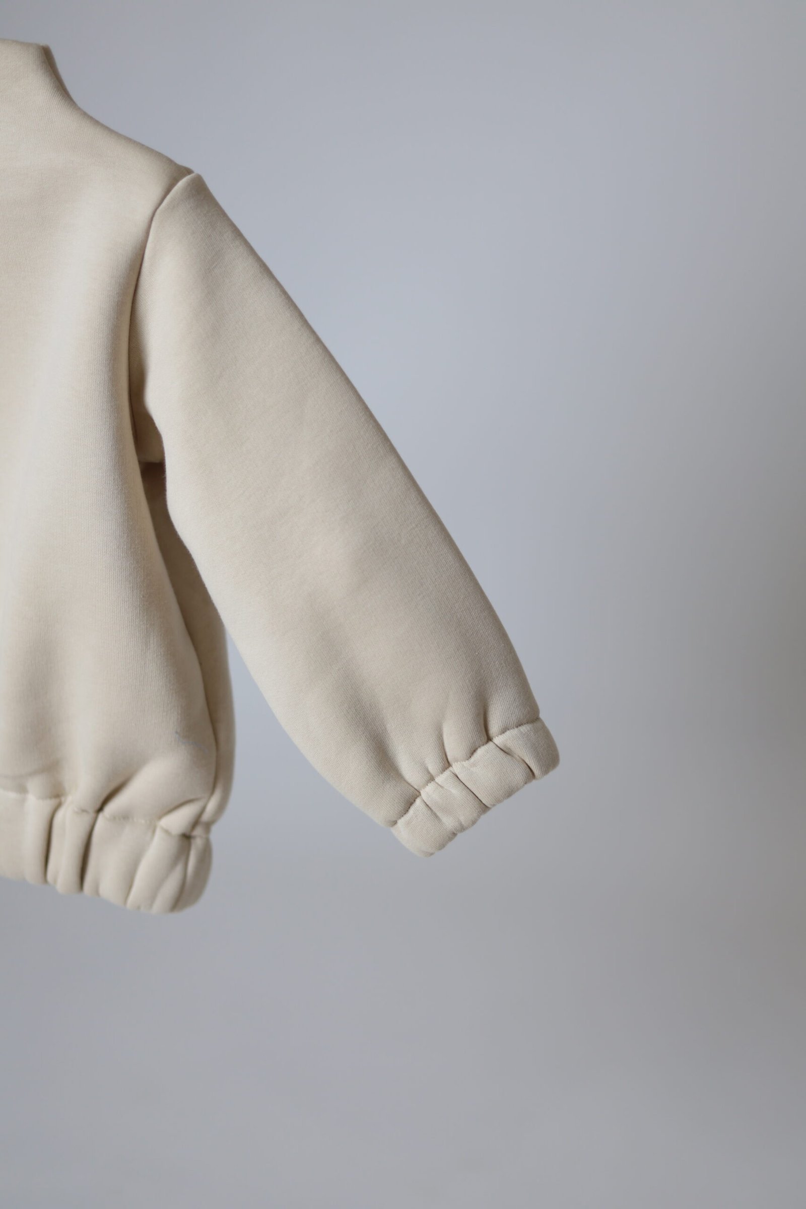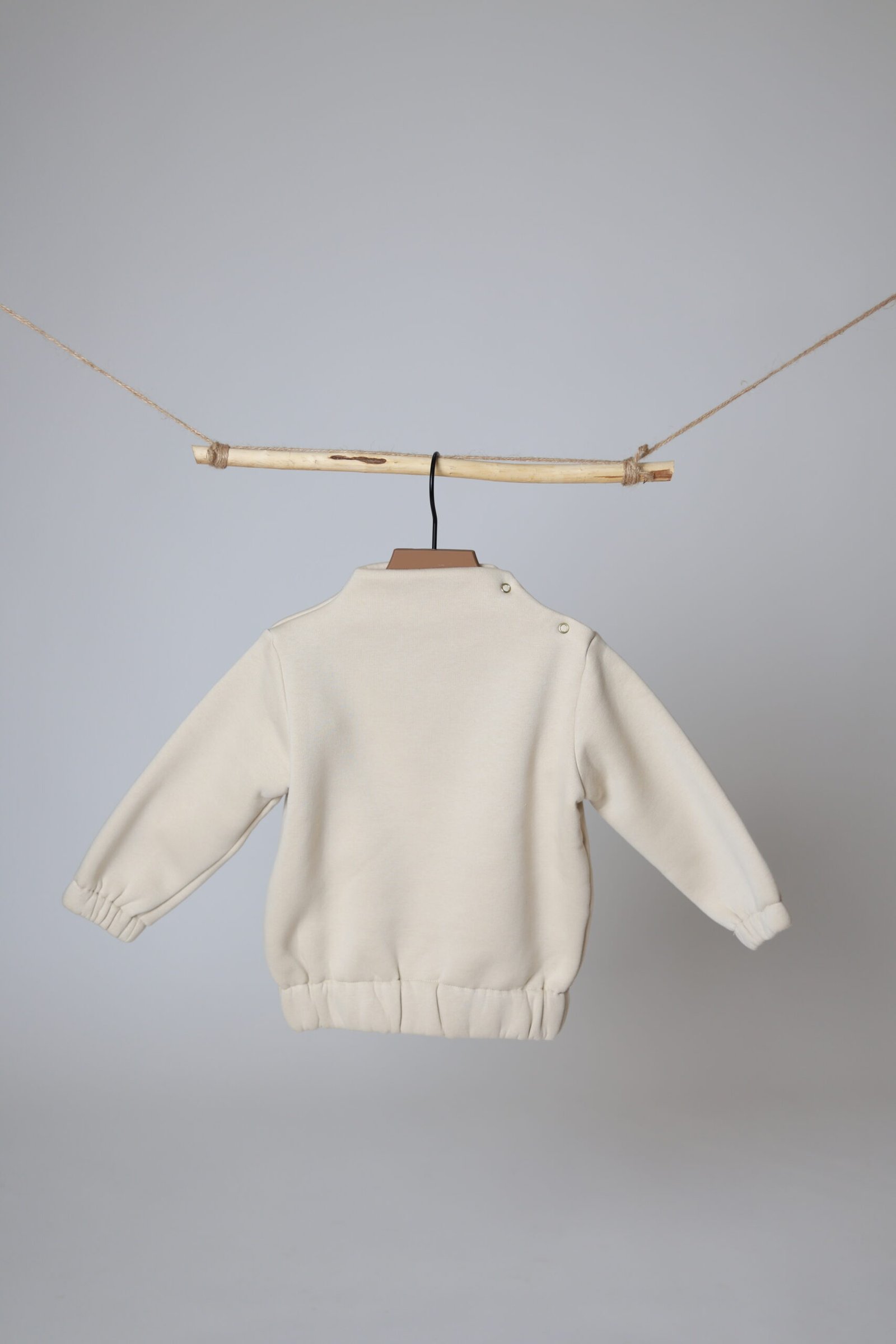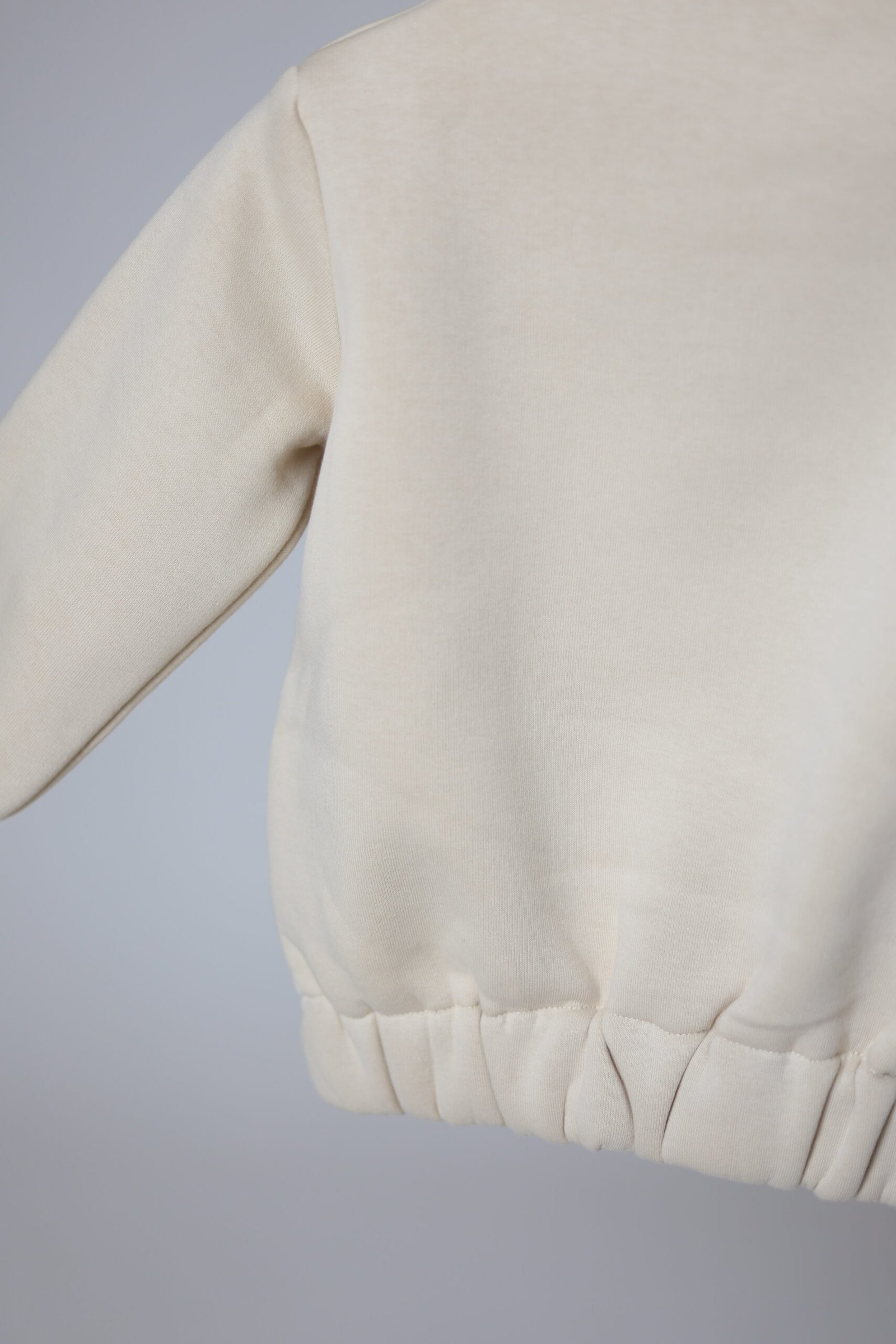 Džemperis šiek tiek paaukštintu kakliuku, segamas šone trijomis spaudėmis. Su gumele apačioje bei rankovių galuose. Laisvas, patogus. Pasiūtas iš ypatingai malonios medvilnės su pūkeliu viduje.