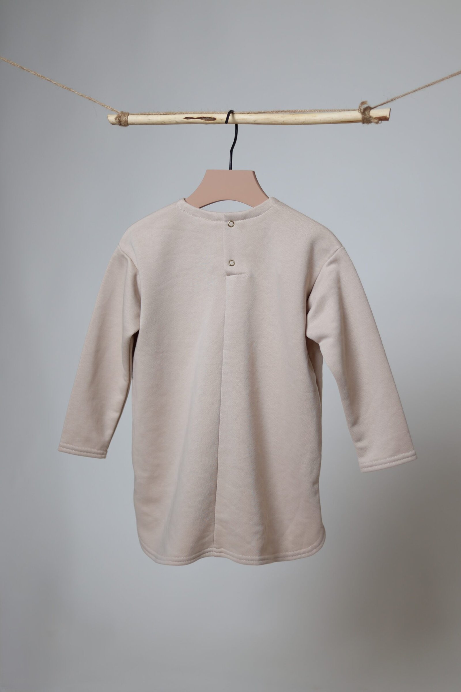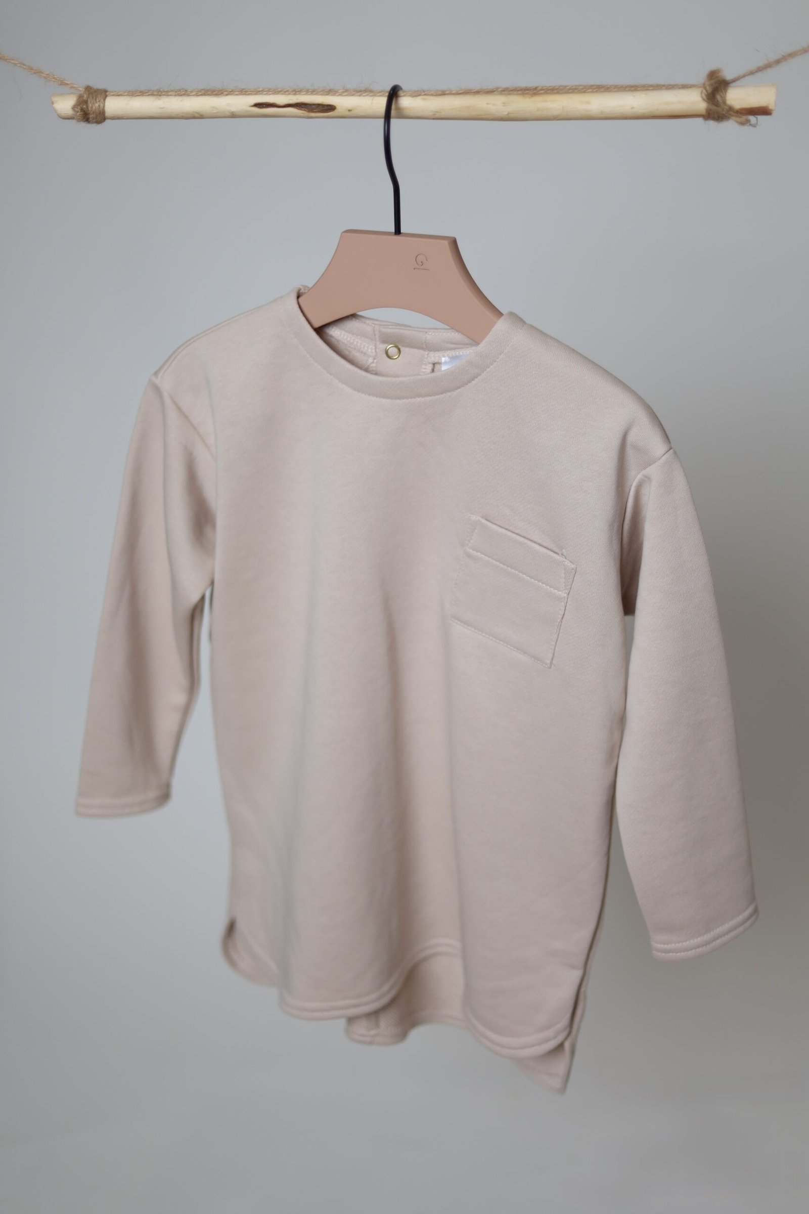Laisvas, kiek prailginto modelio džemperis. Priekyje su kišenėle. Pasiūtas iš ypatingai malonios medvilnės.
