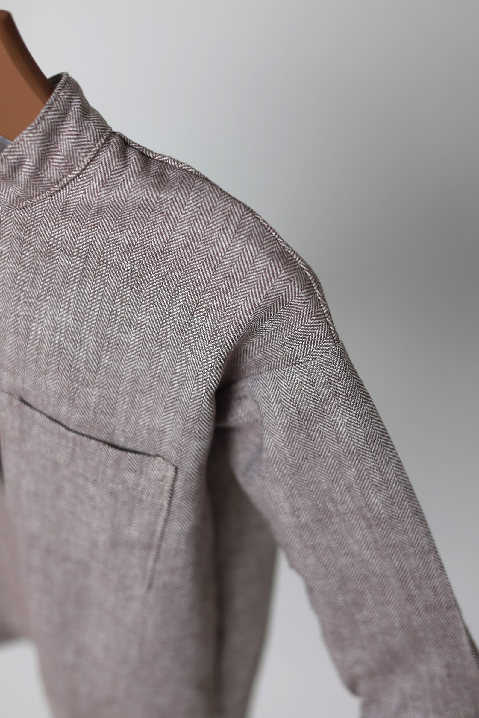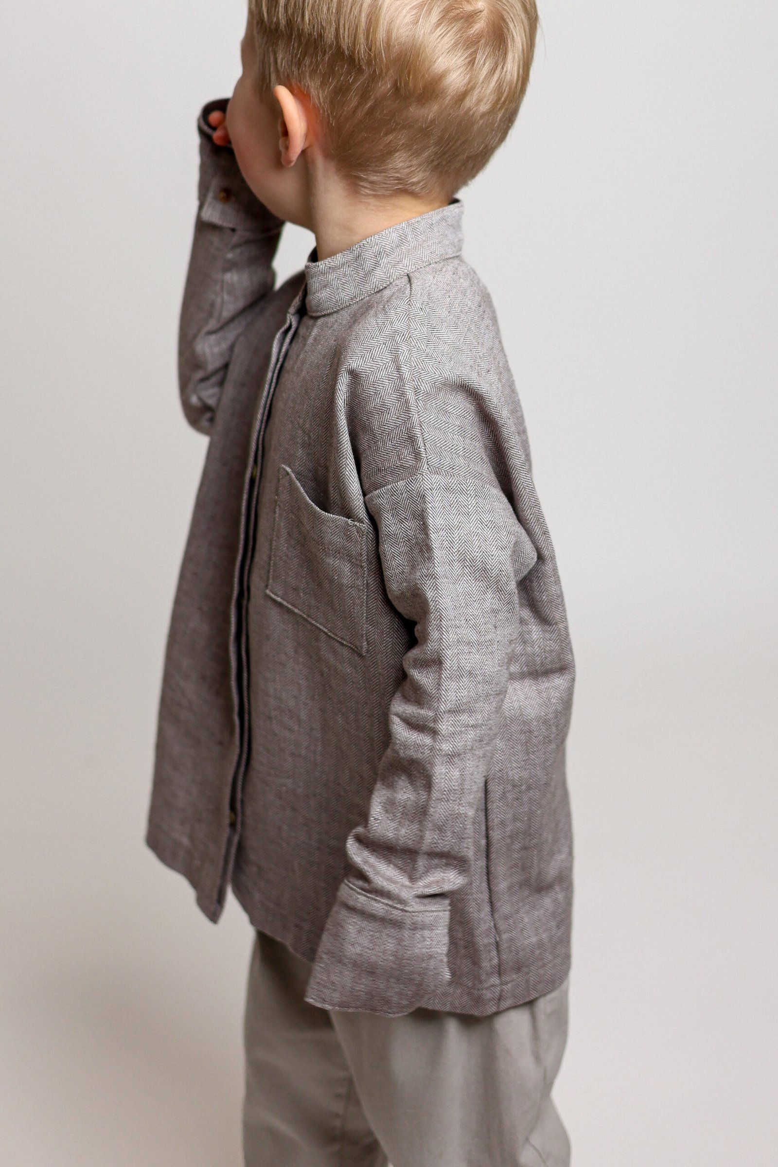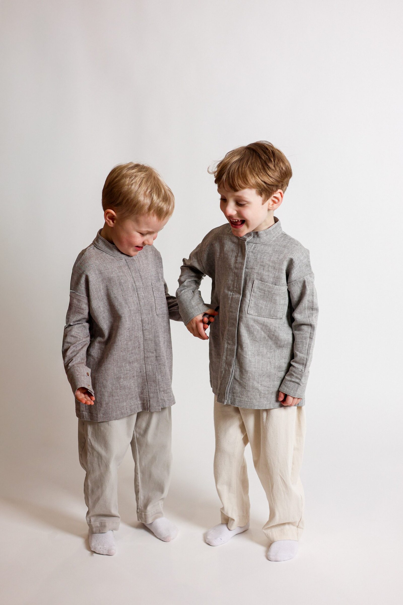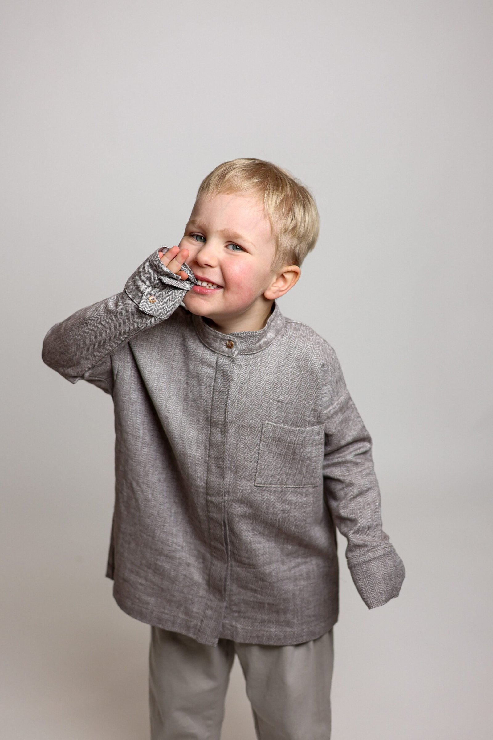 Minimalistinio rašto, lino ir medvilnės audinio marškiniai tinkami tiek mergaitėms, tiek berniukams. Šiek tiek ilginti, rankovės gali būti palenkiamos. Klasikinio dizaino, su pakelta apykakle ir kišenėle. Tiesaus modelio, puikiai tiks nešioti ir sukištus, ir ant viršaus. Segami paslėptu užsegimu, matoma tik viršutinė sagutė, rankovės segamos dvieiliu užsegimu.