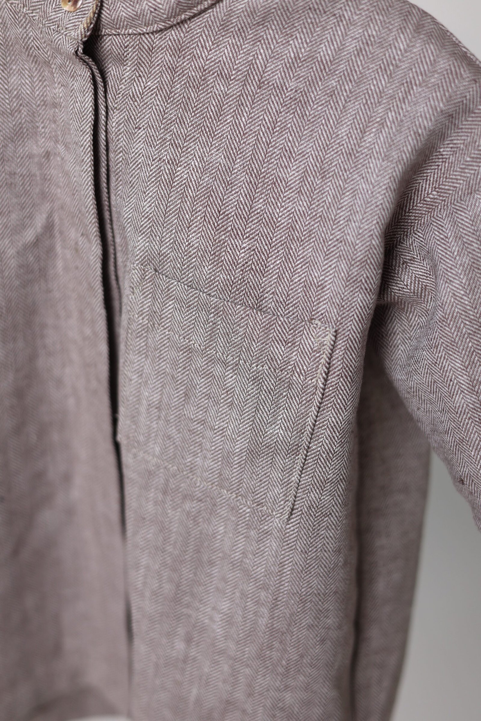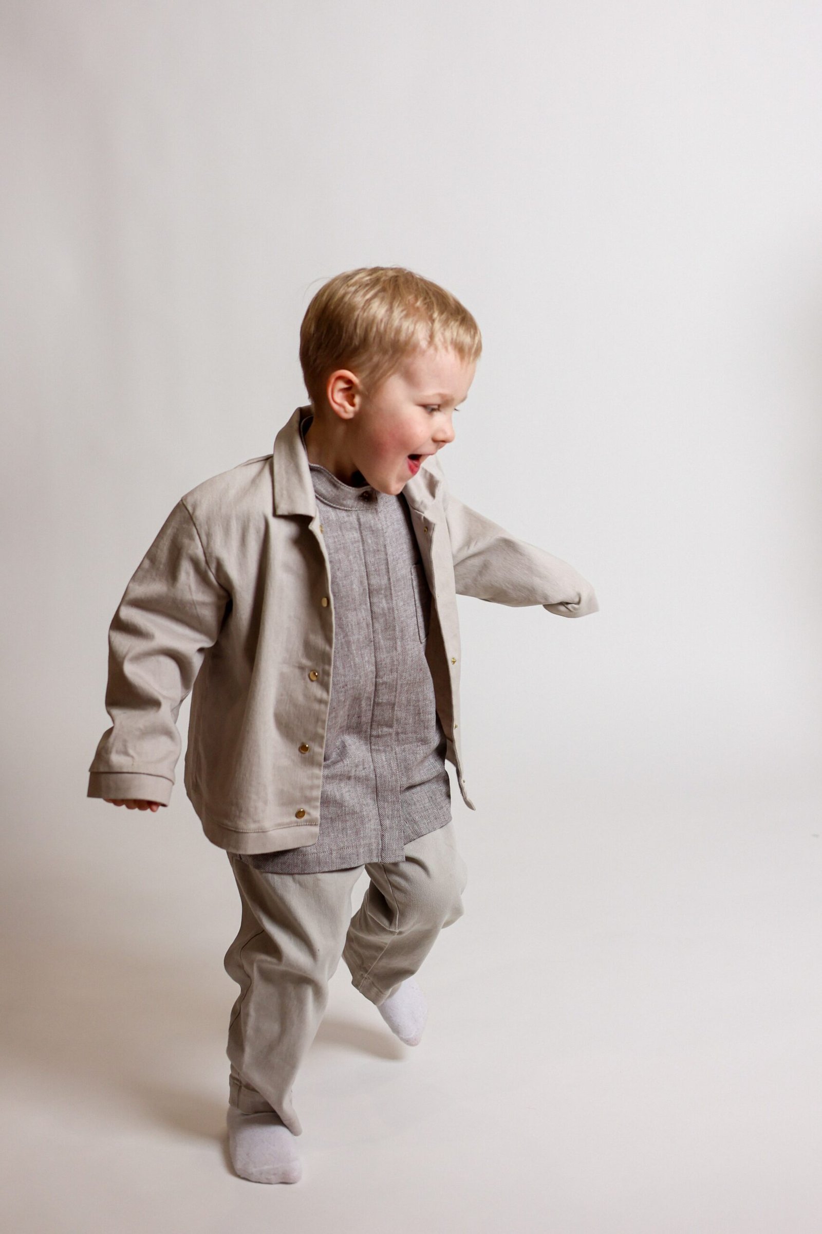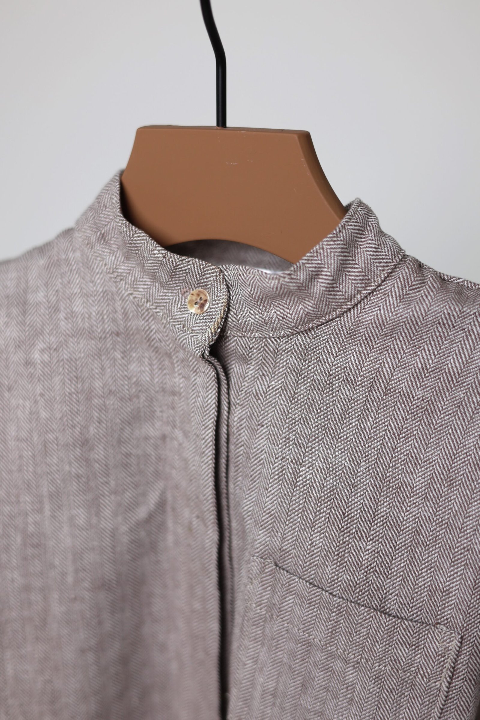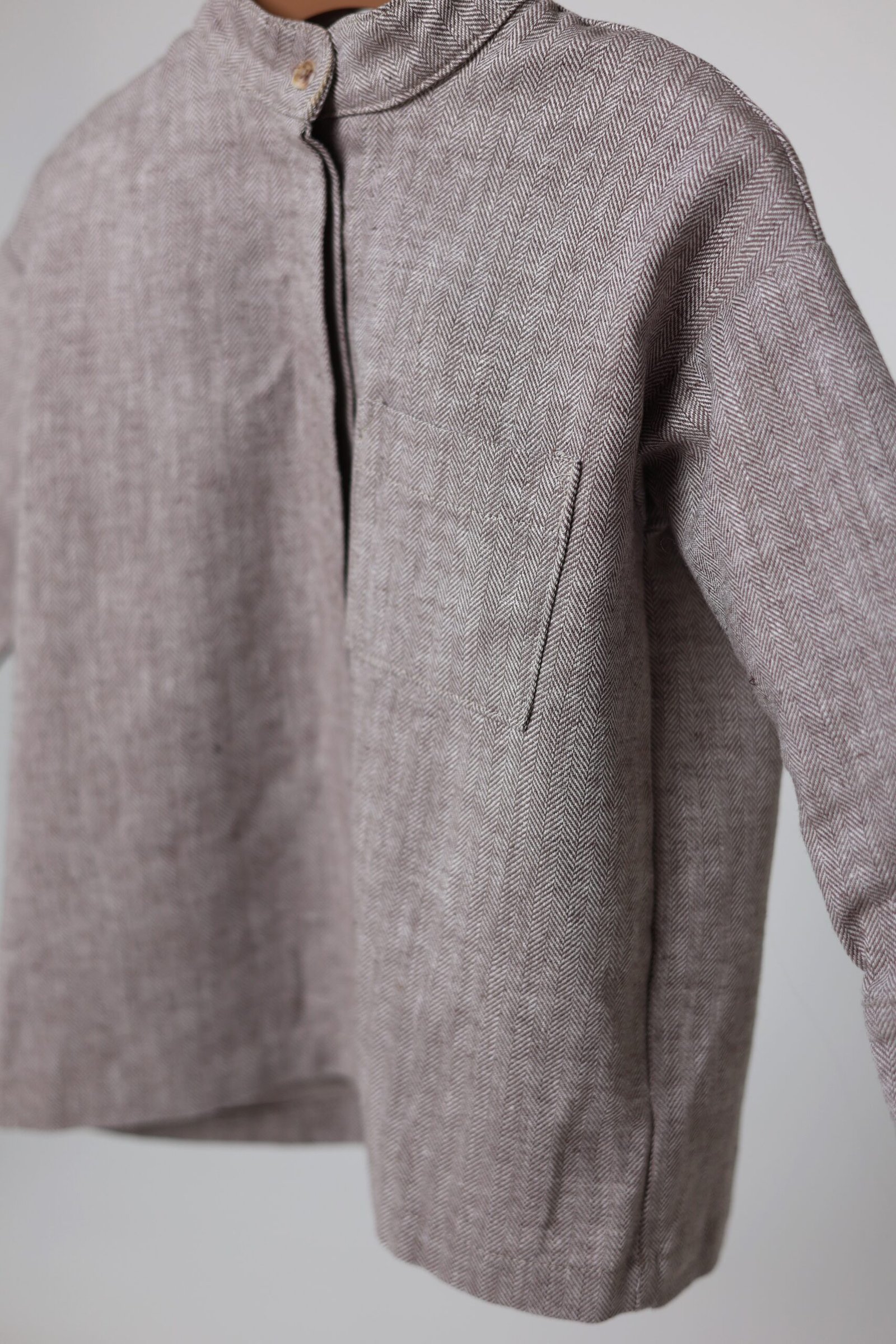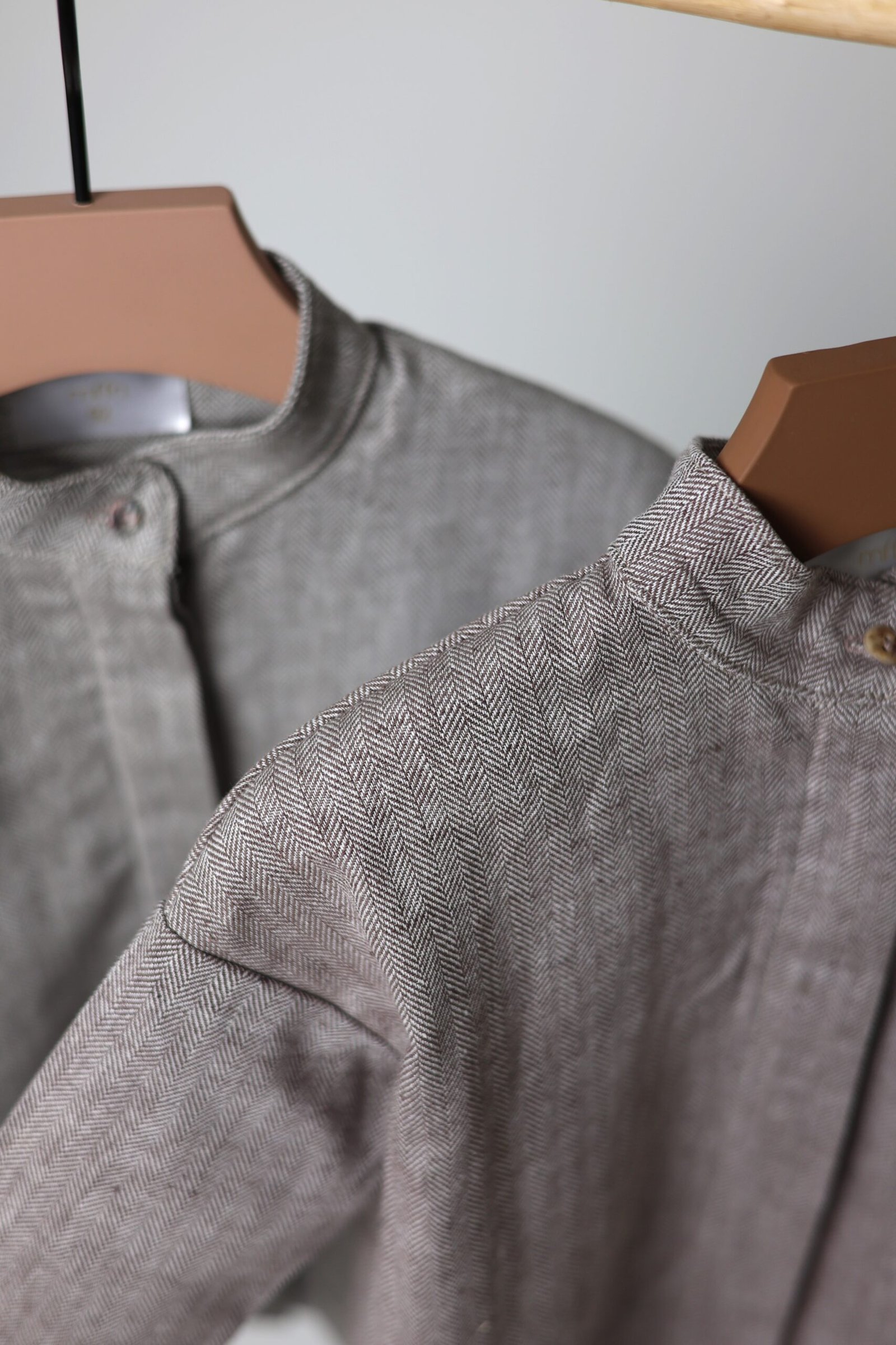 Minimalistinio rašto, lino ir medvilnės audinio marškiniai tinkami tiek mergaitėms, tiek berniukams. Šiek tiek ilginti, rankovės gali būti palenkiamos. Klasikinio dizaino, su pakelta apykakle ir kišenėle. Tiesaus modelio, puikiai tiks nešioti ir sukištus, ir ant viršaus. Segami paslėptu užsegimu, matoma tik viršutinė sagutė, rankovės segamos dvieiliu užsegimu.
