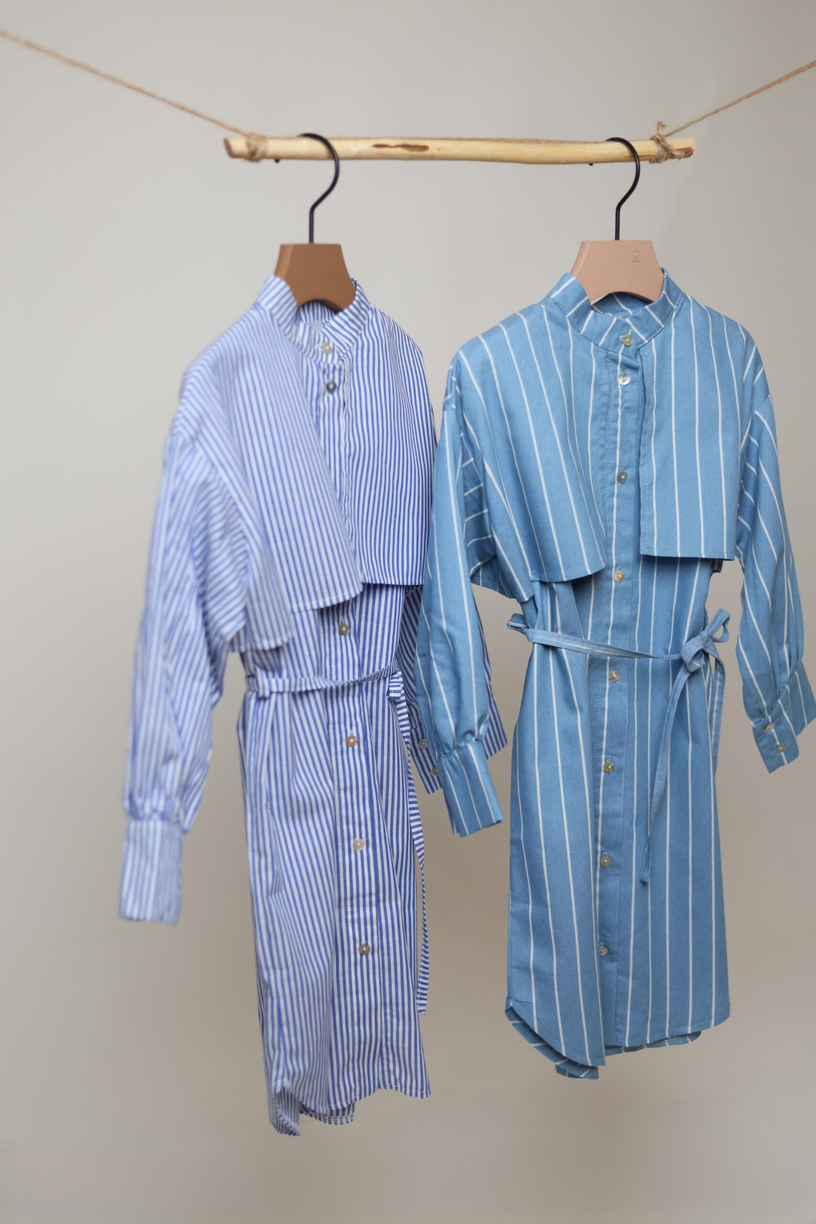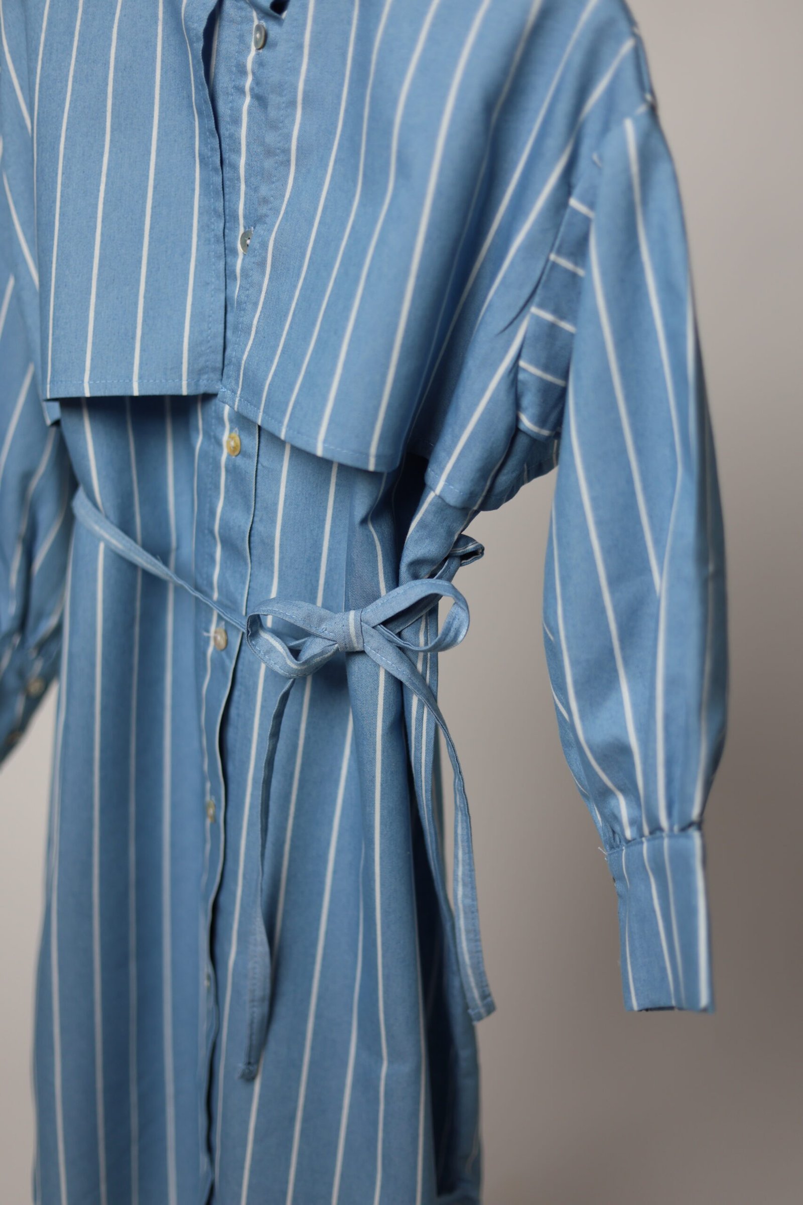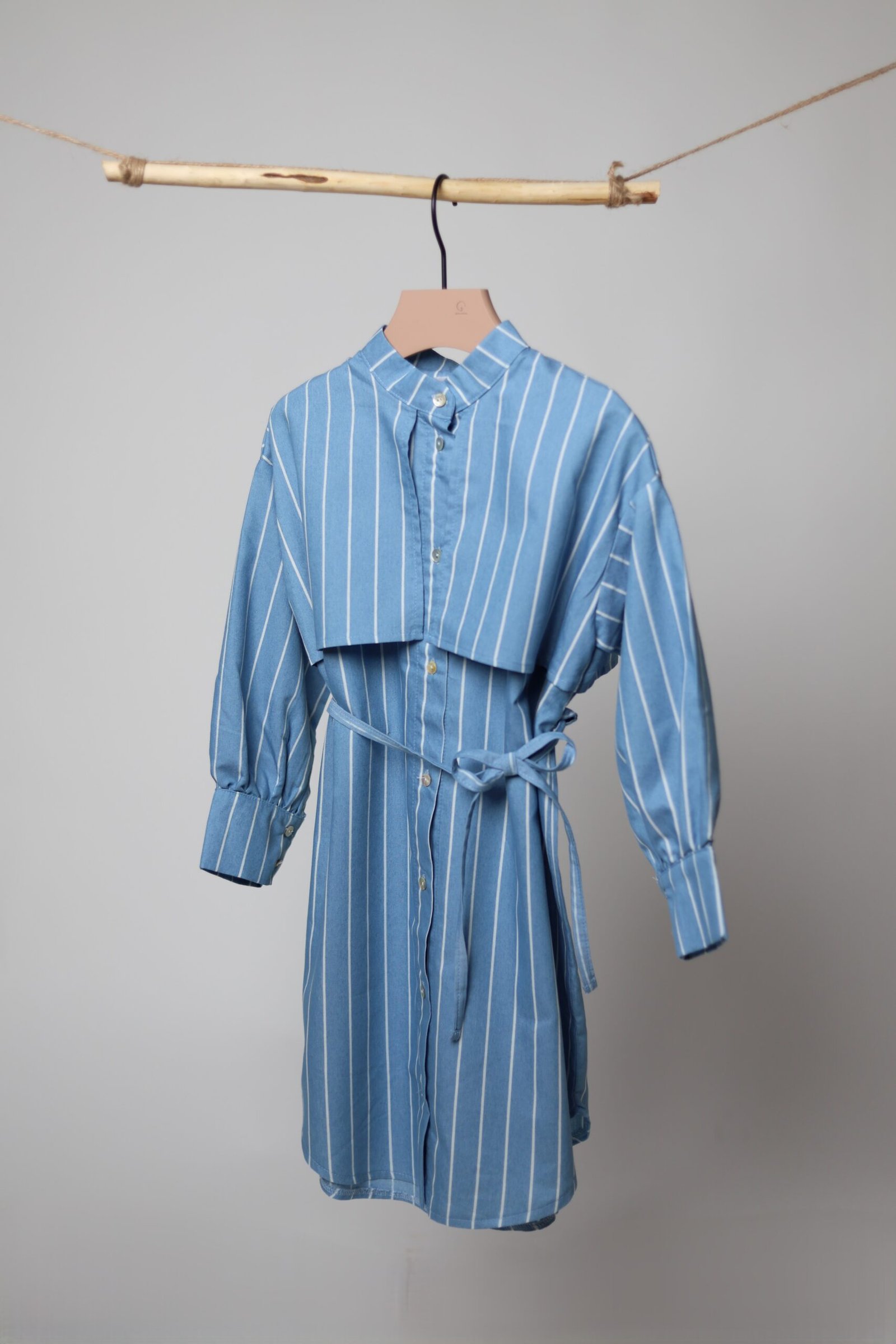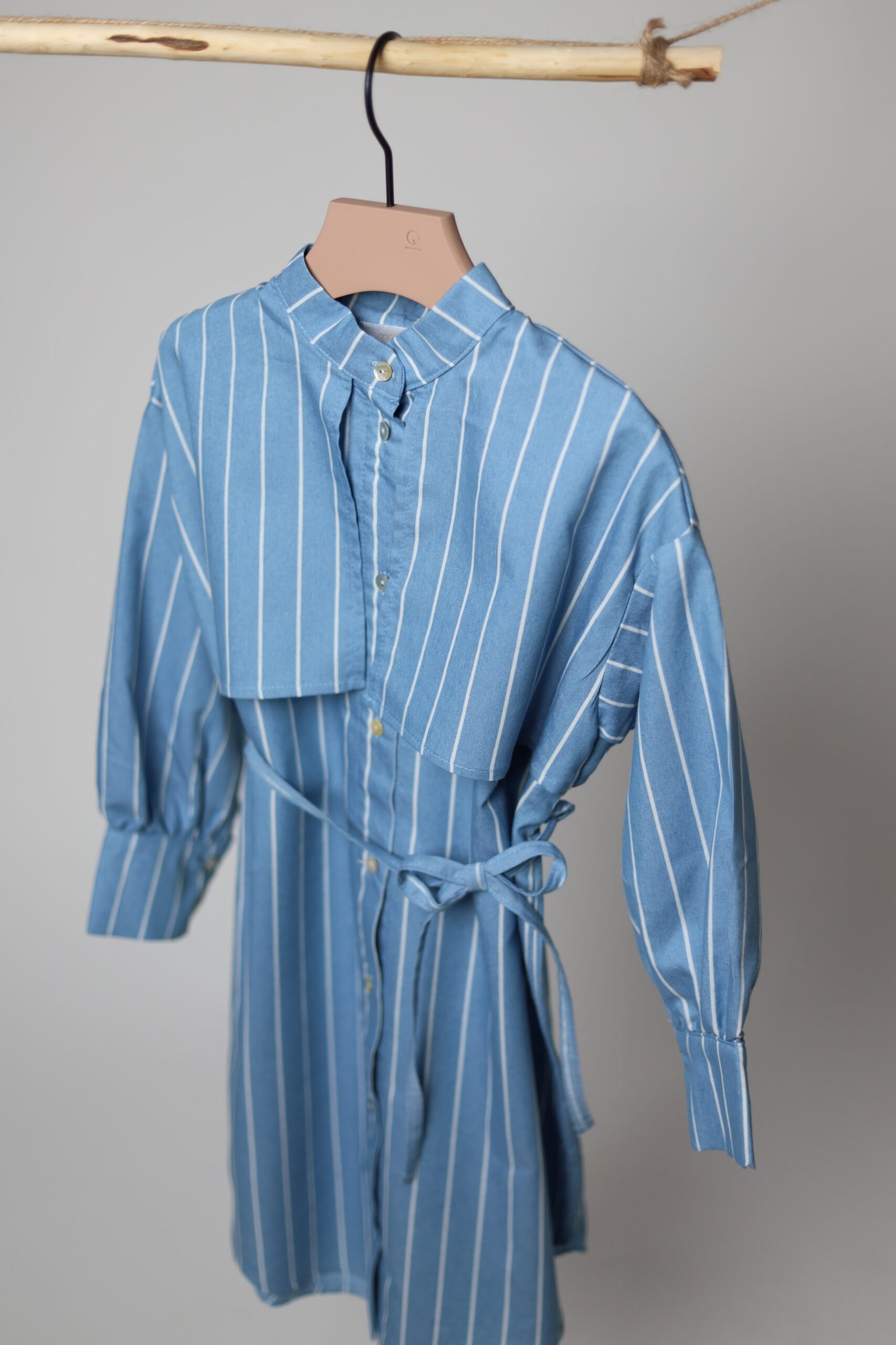 Marškinių tipo suknelė su diržu, denim chambray stripes