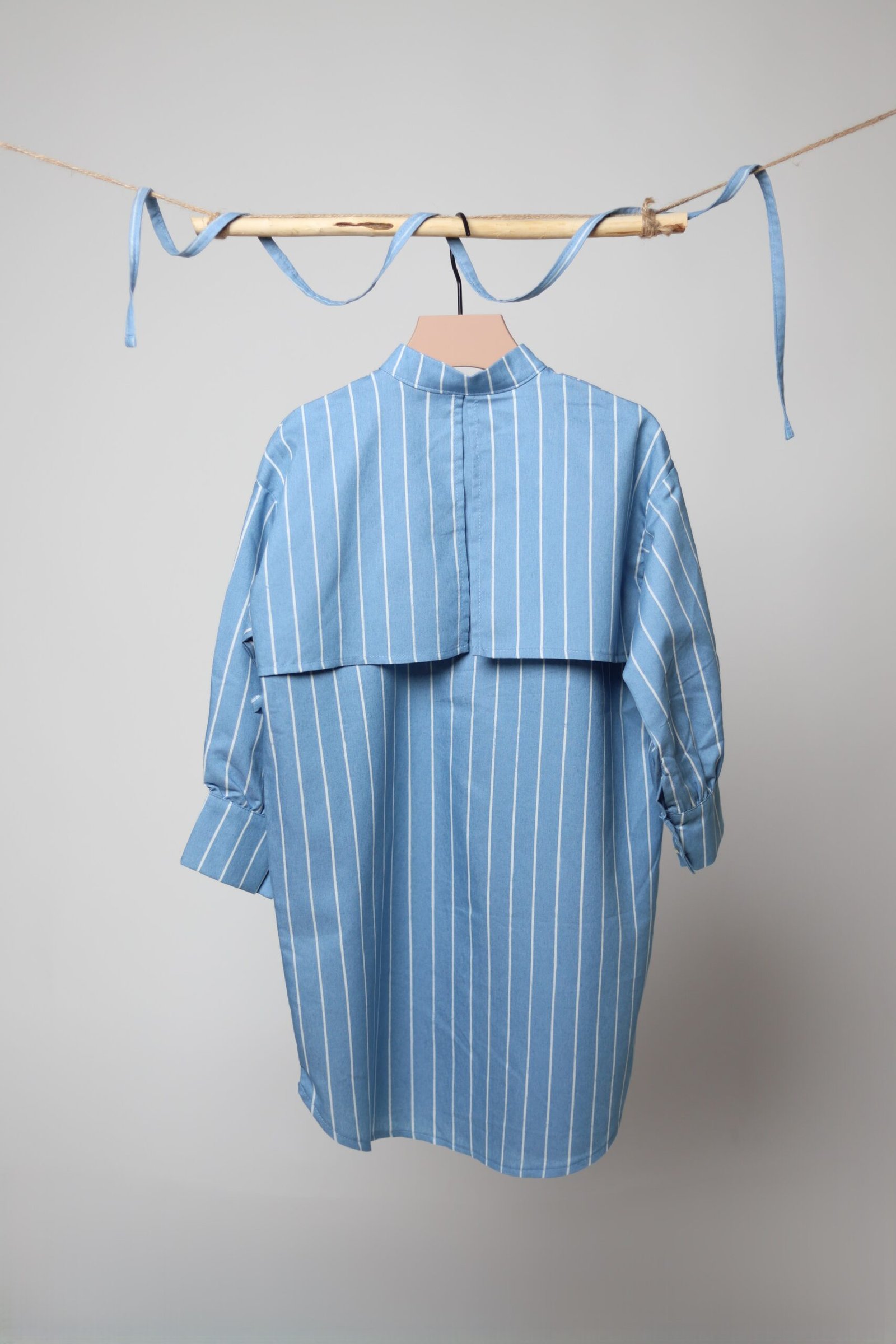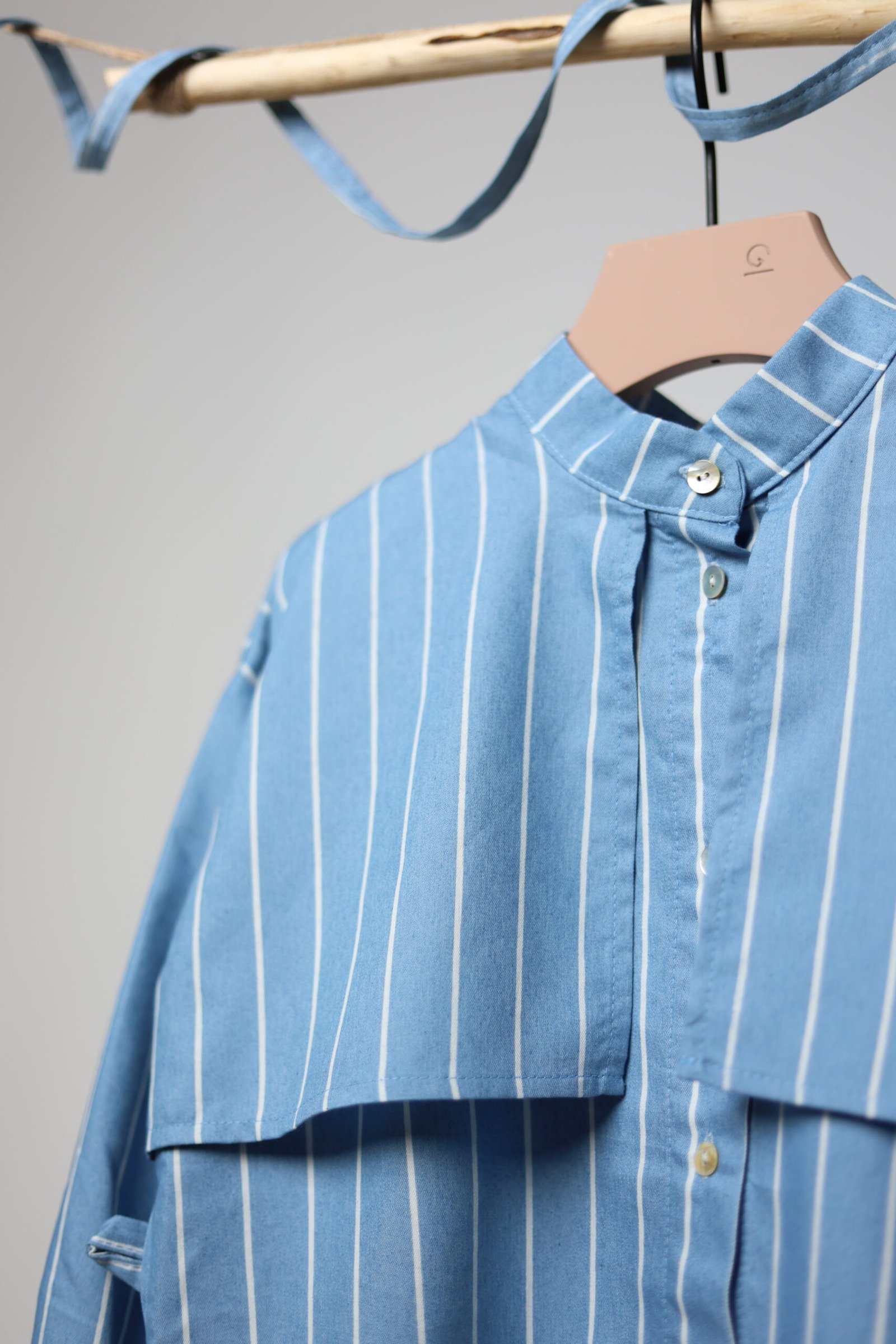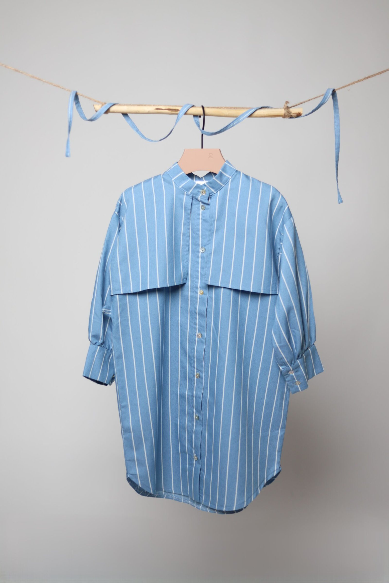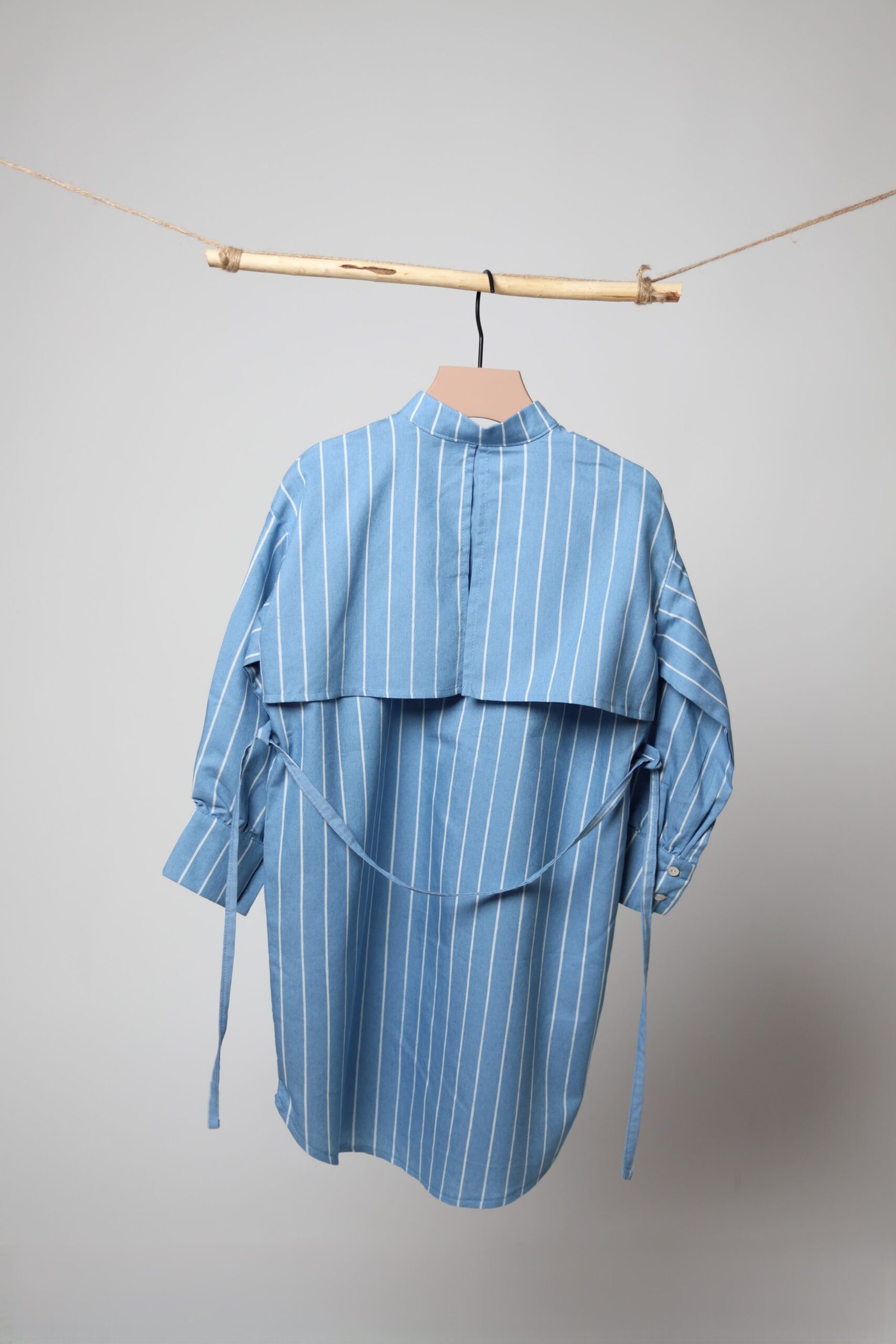 Marškinių tipo suknelė su diržu, denim chambray stripes