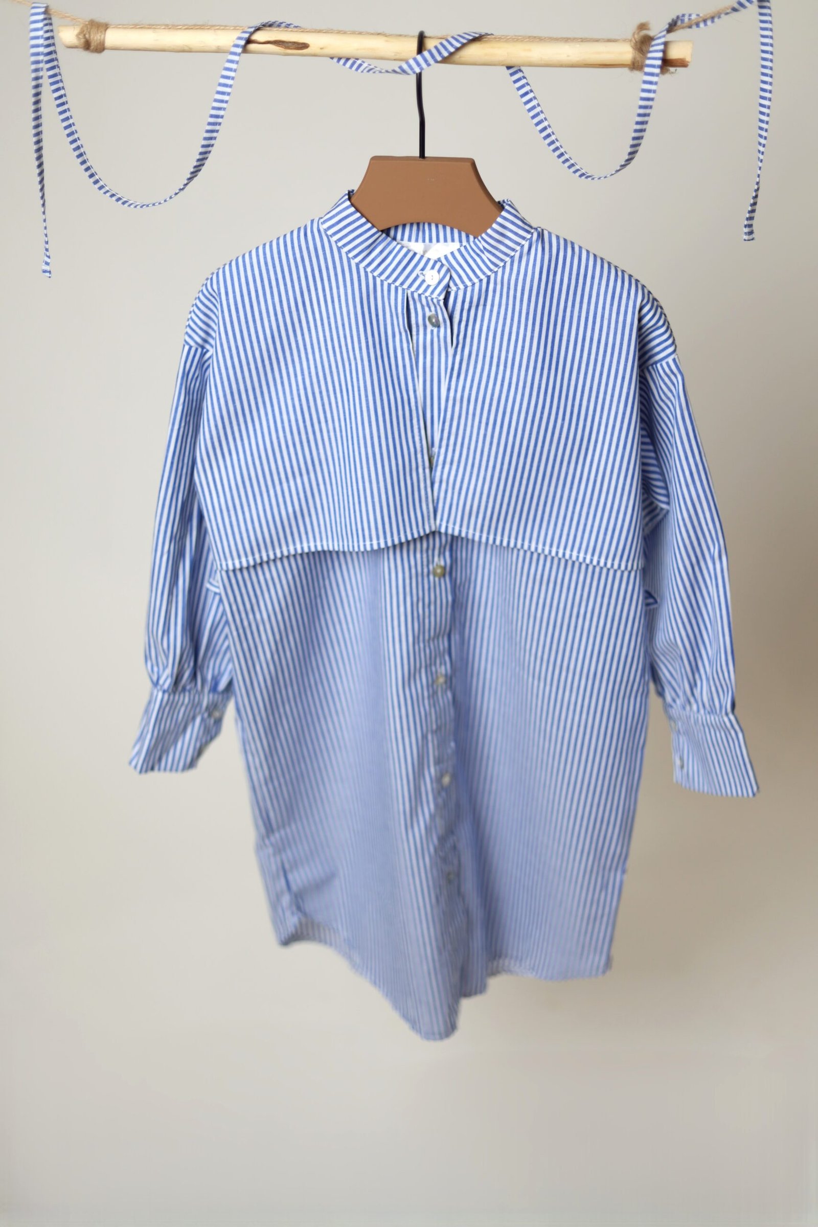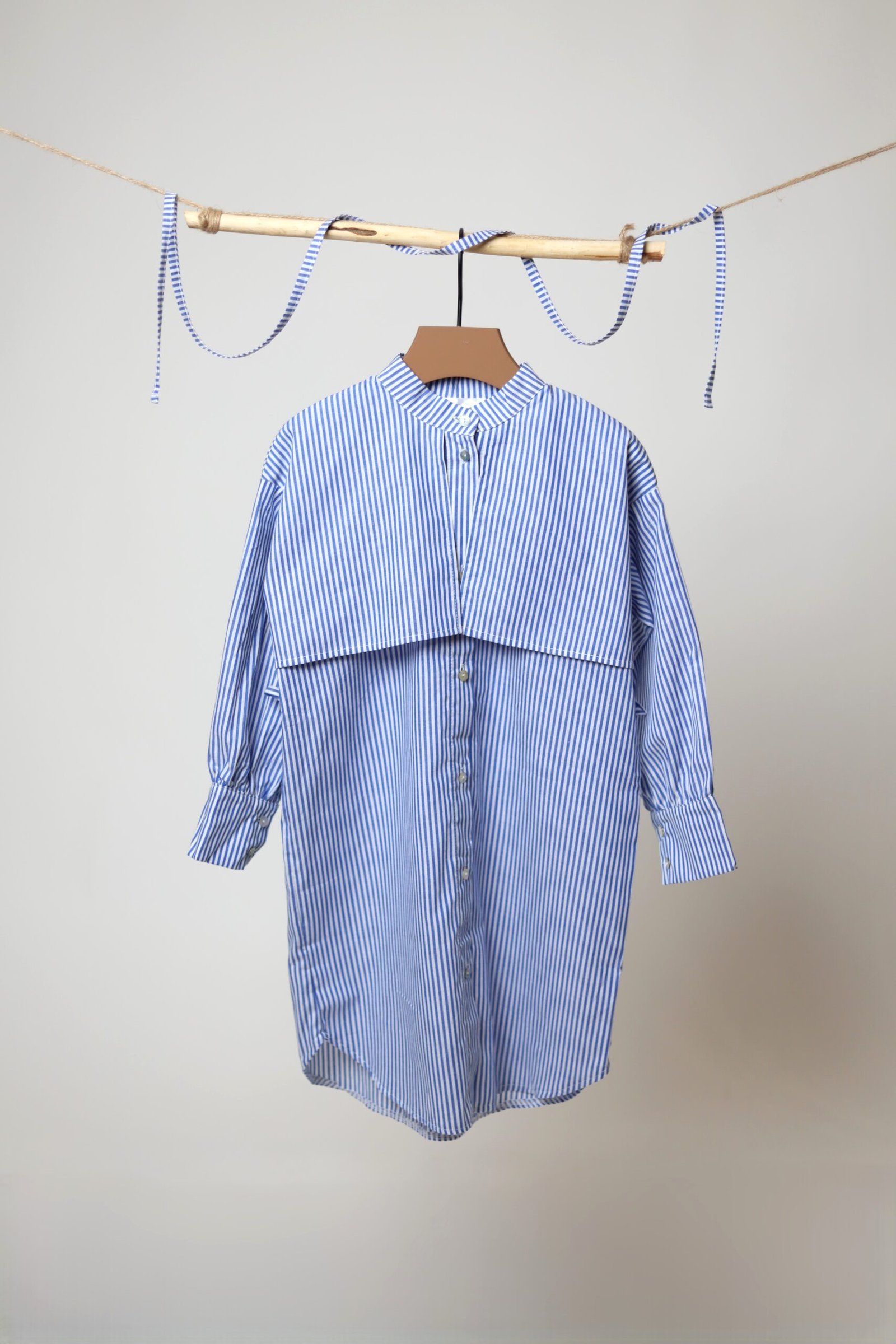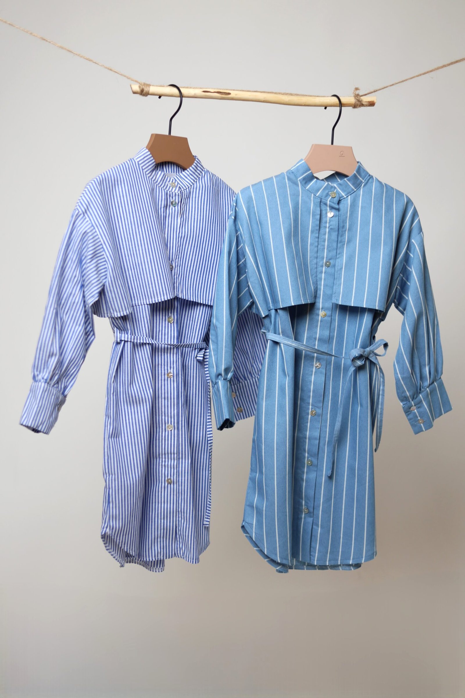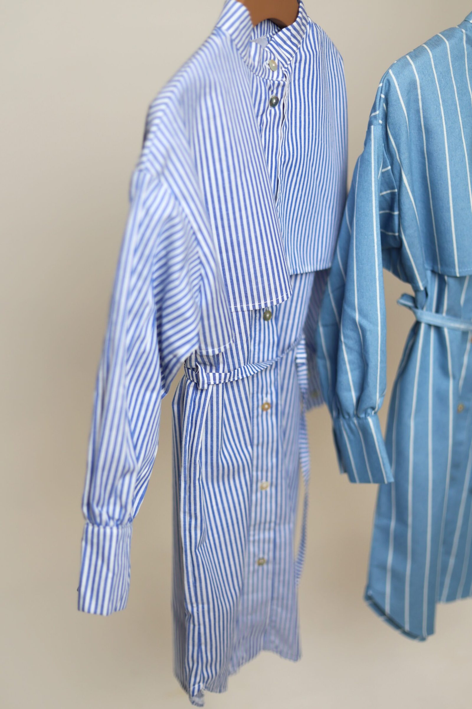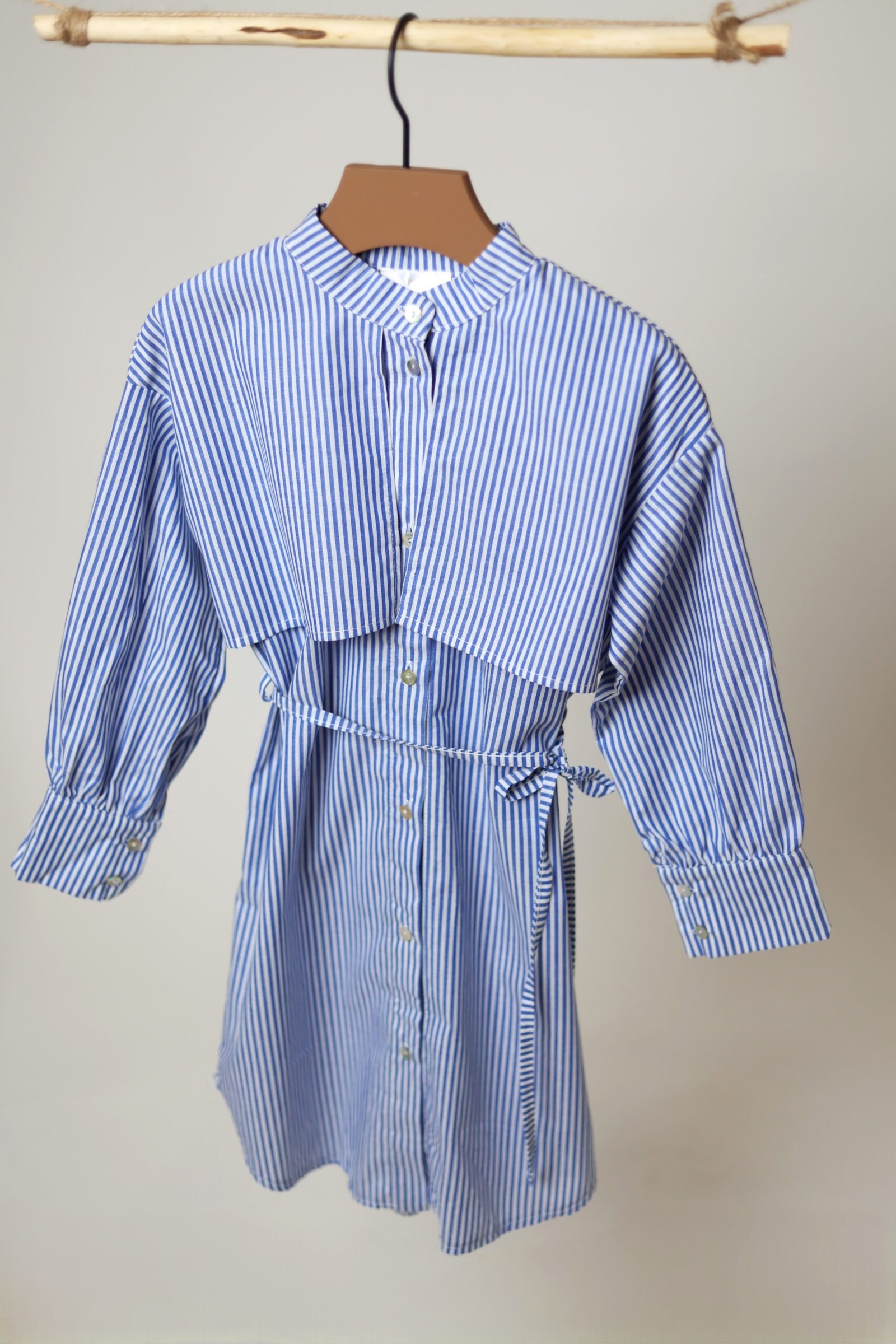 Marškinių tipo suknelė su diržu, gnm stripes blue