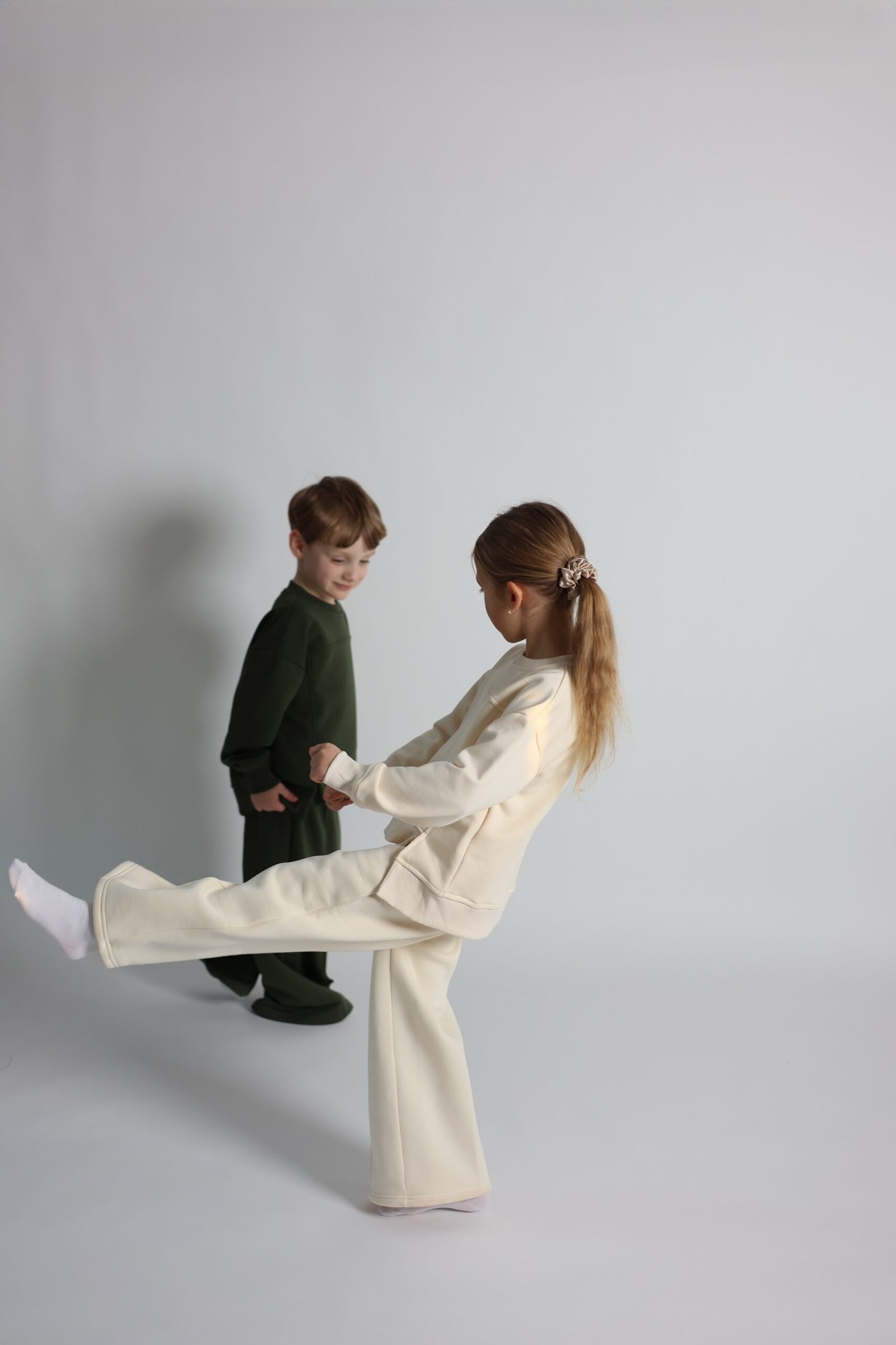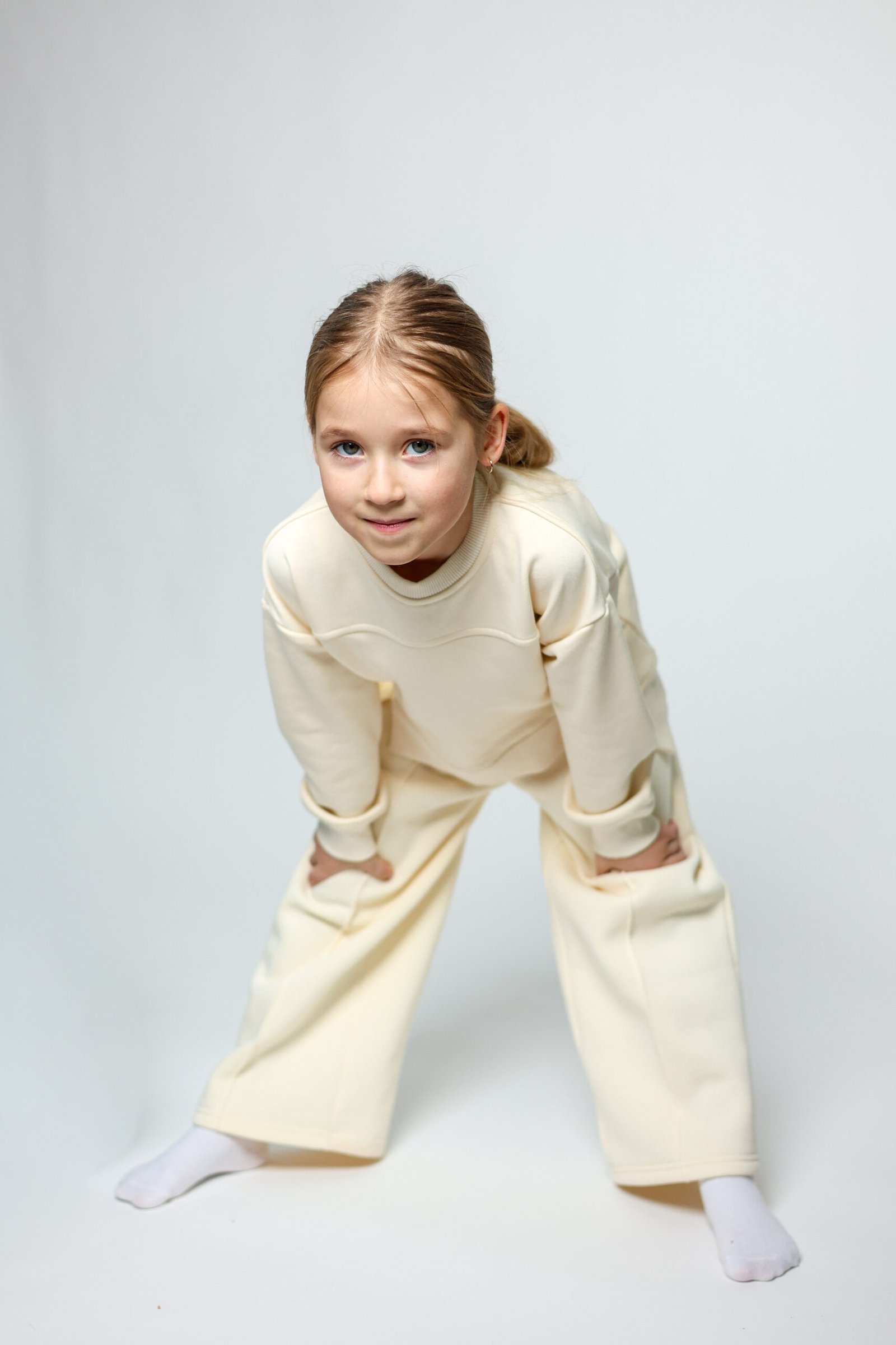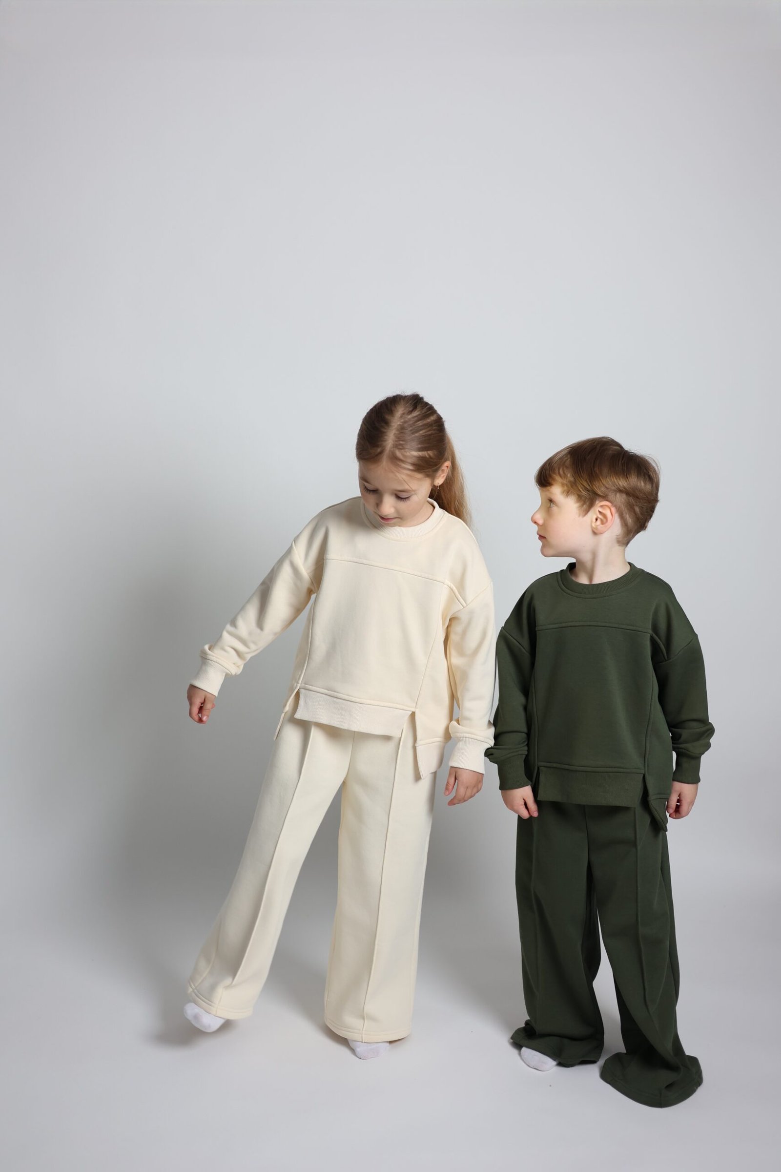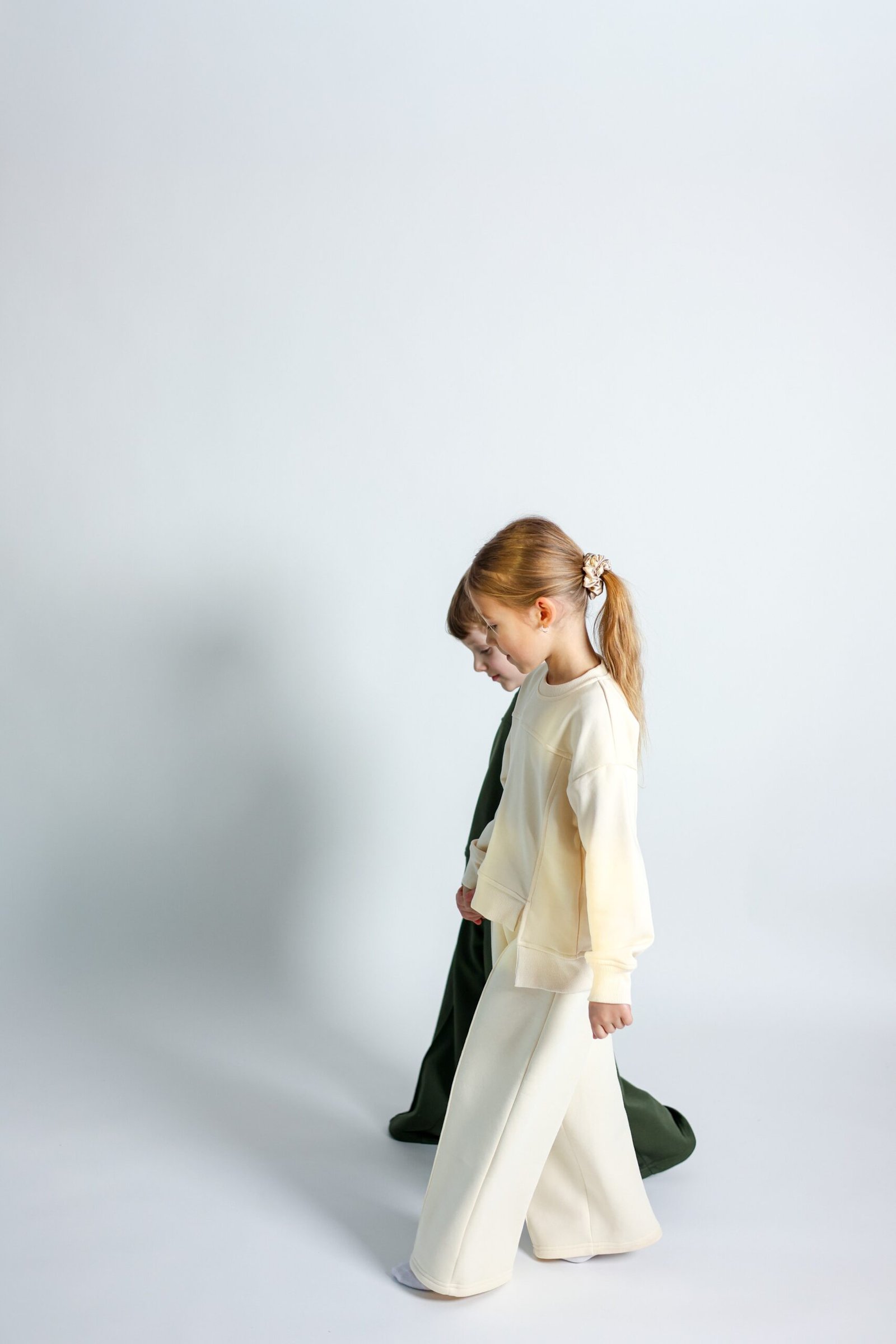 Aukštesnio liemens kelnės, su gumele ties liemeniu ir rišamu natūraliu raišteliu. Plataus, tiesaus dizaino, su kanteliu priekyje.