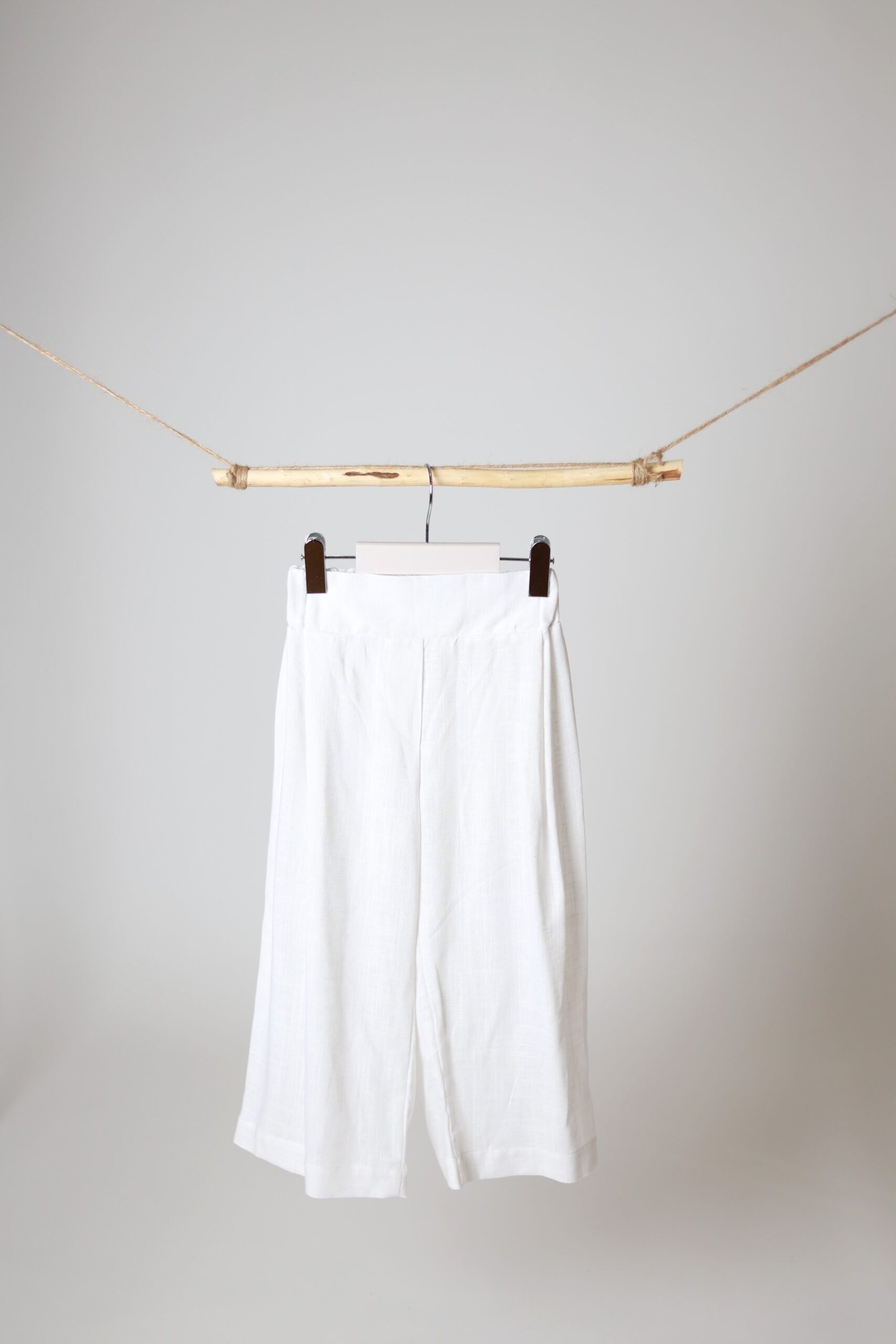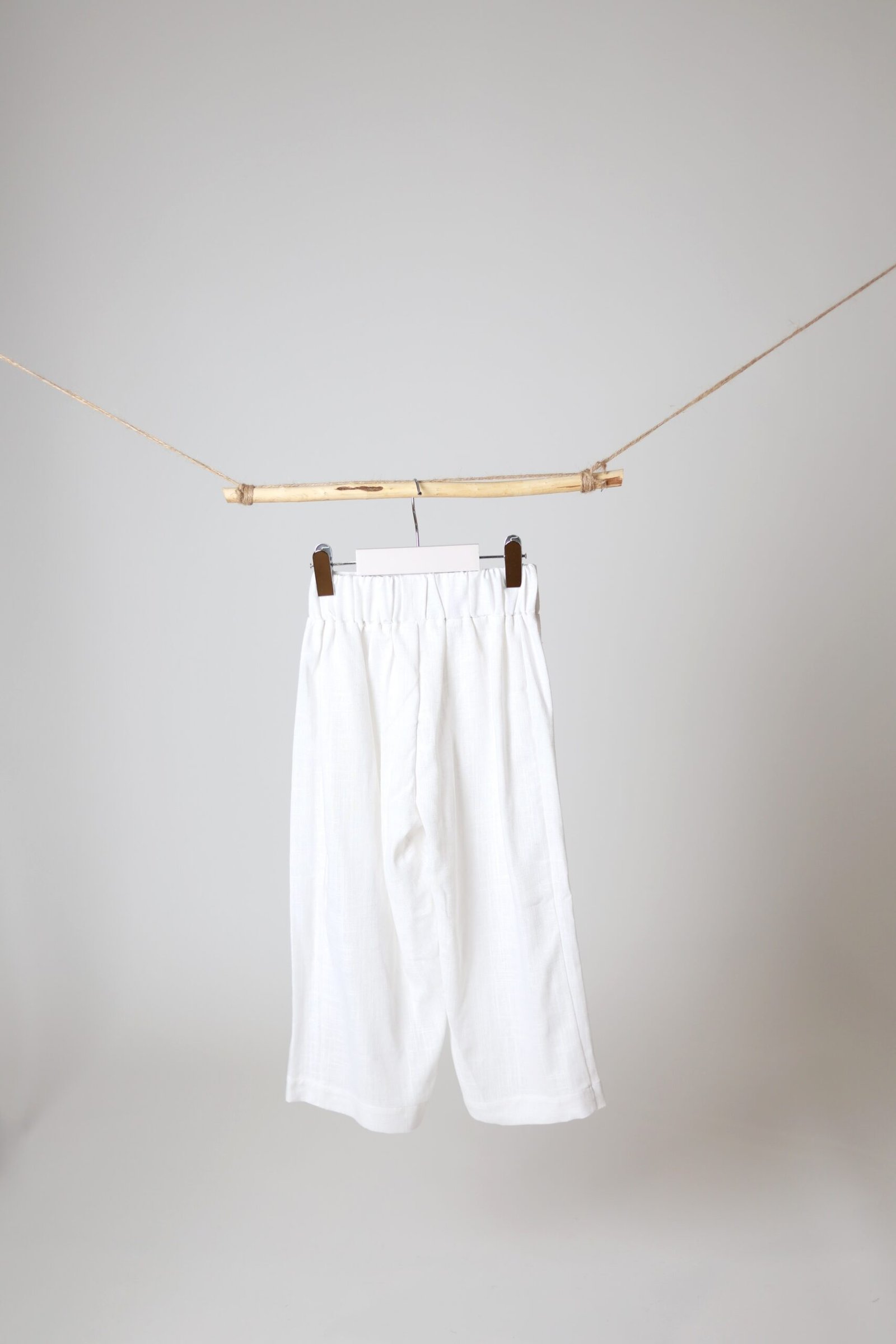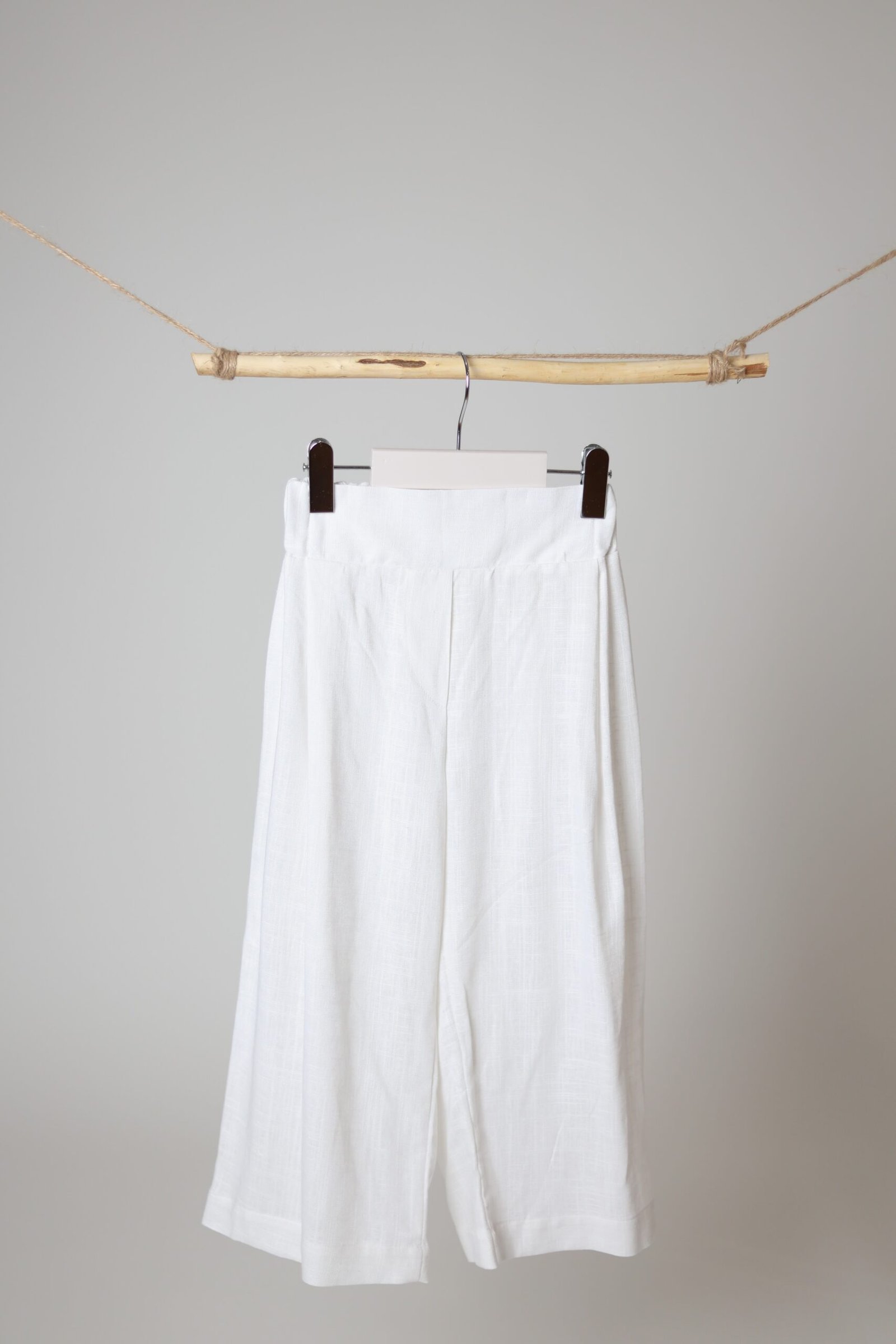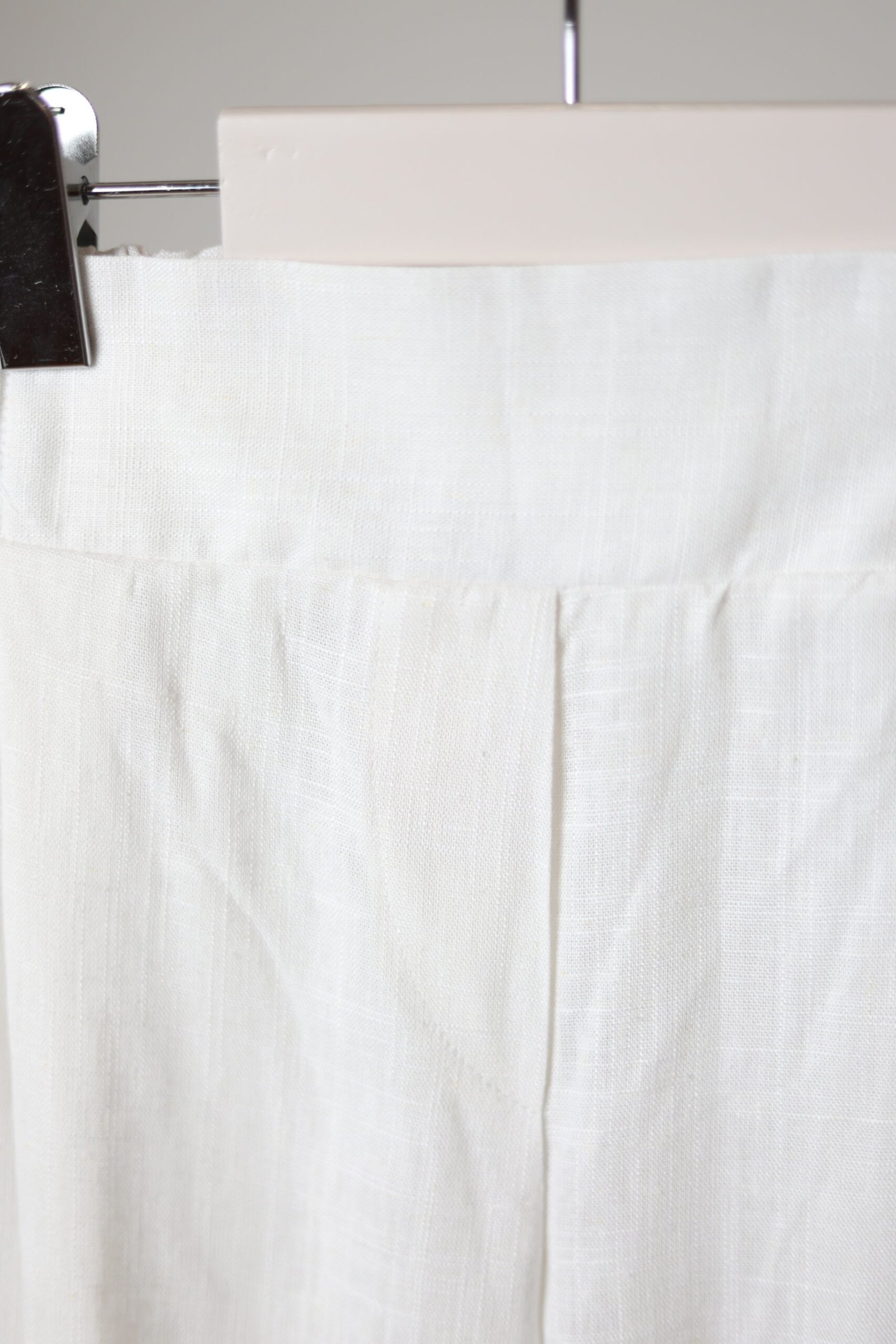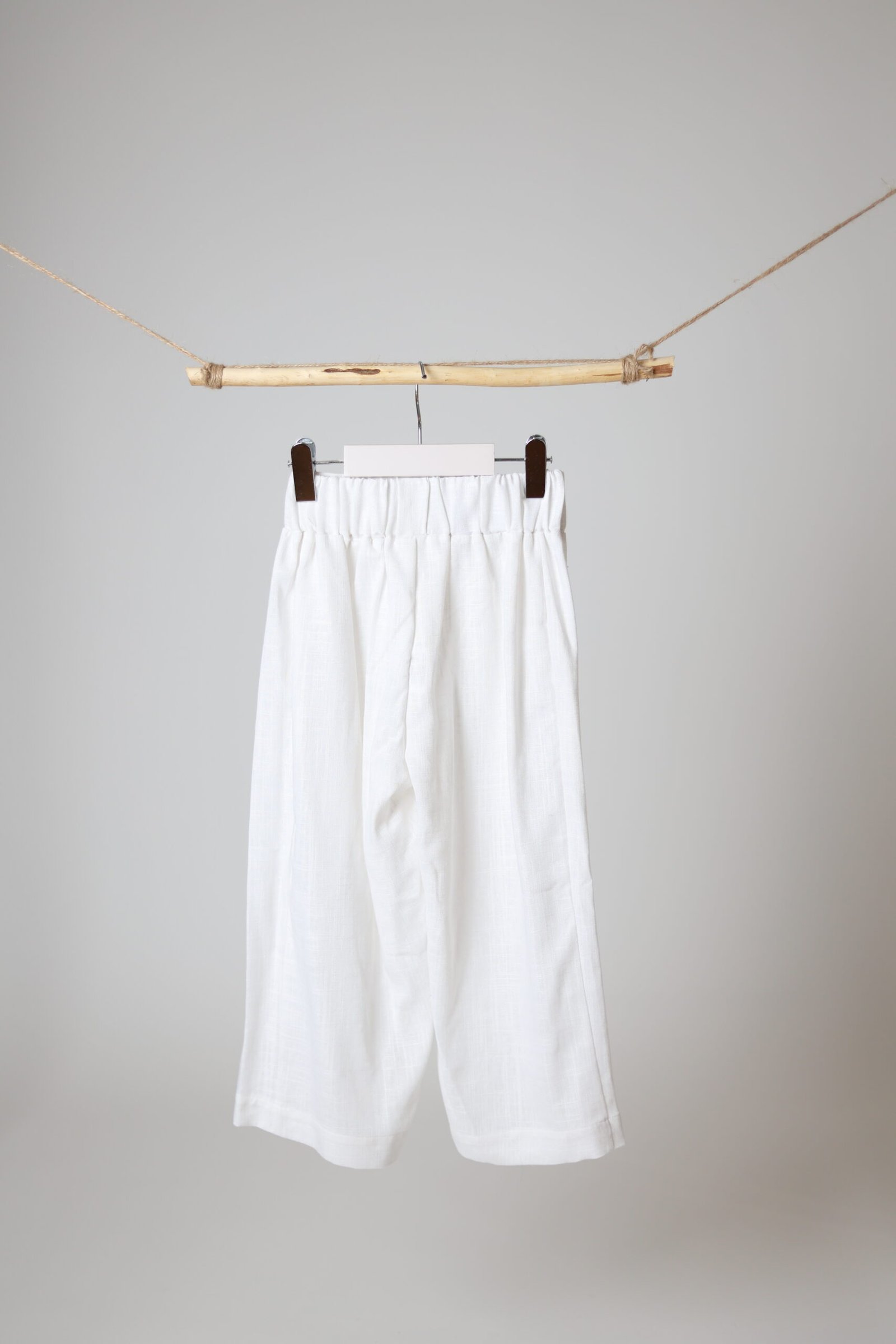 Plačios lino kelnės su gumele, white