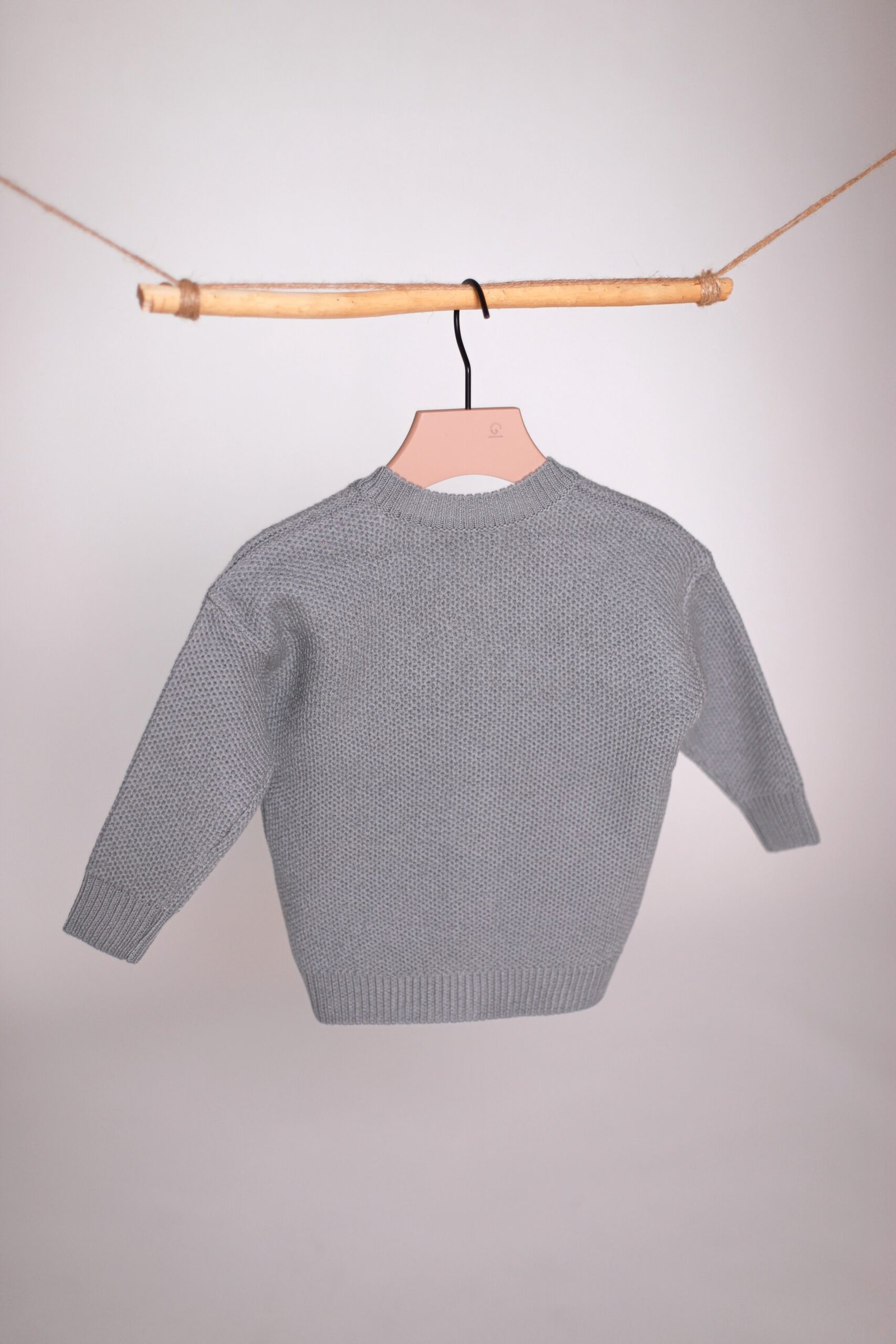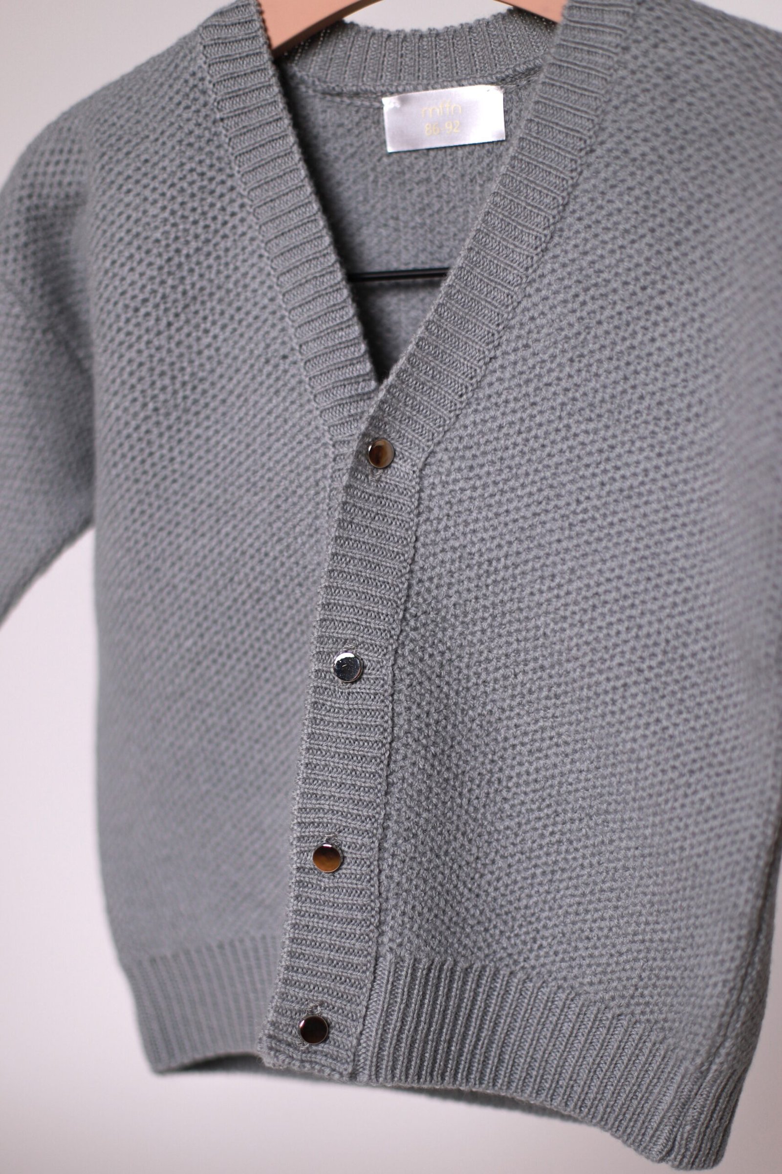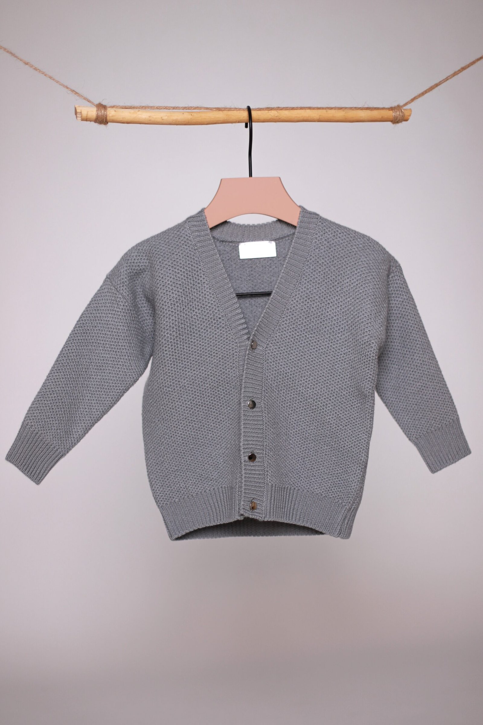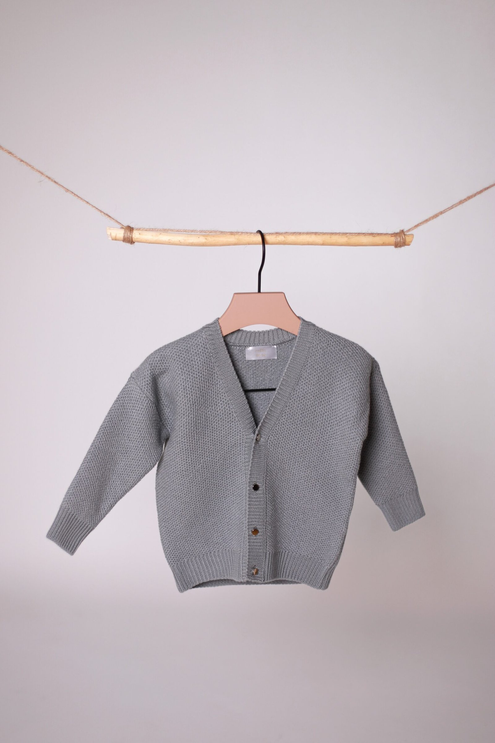 Merino vilnos megztinis, susagstomas keturiomis sidabro spalvos sagutėmis. Puikiai tiks vaikams, kurie labai nemėgsta, kuomet reikia rengtis per galvytę. Pagamintas iš ypatingai švelnių, aukščiausios kokybės itališkų merino vilnos siūlų. Tinkamas visais metų laikais – tiek kiek vėsesniais vakarais, tiek šaltomis žiemomis. Merino vilna šildo, tačiau neperkaitina, yra pralaidi orui, pasižymi antibakterinėmis savybėmis.