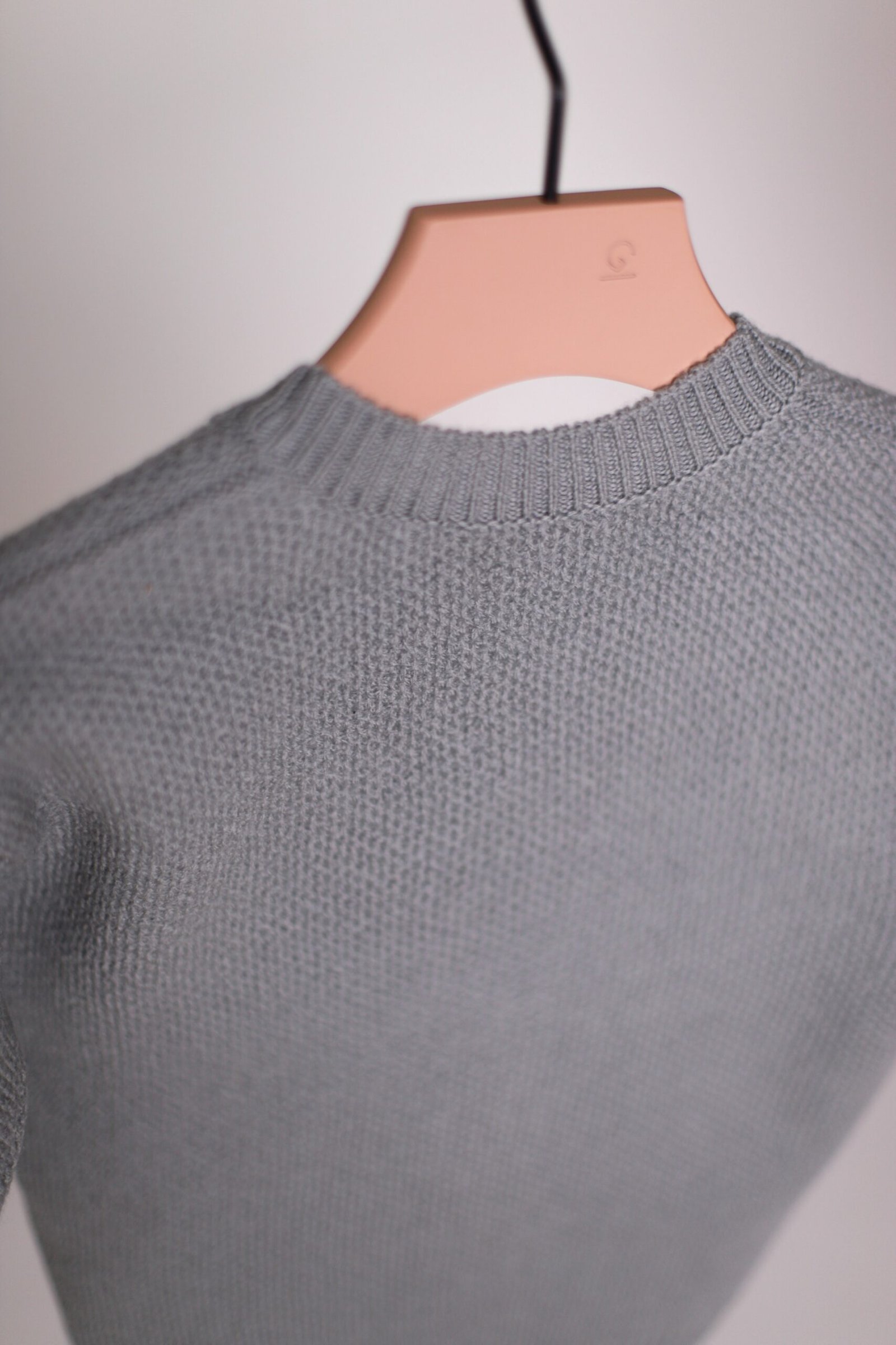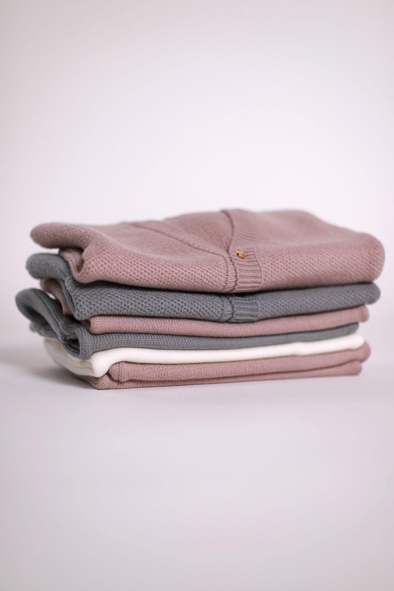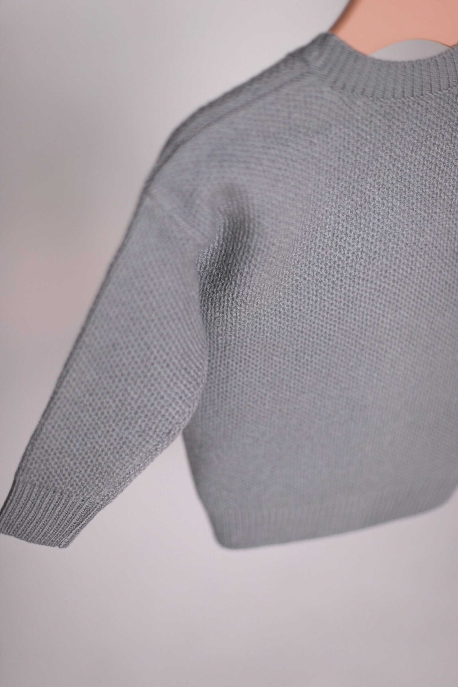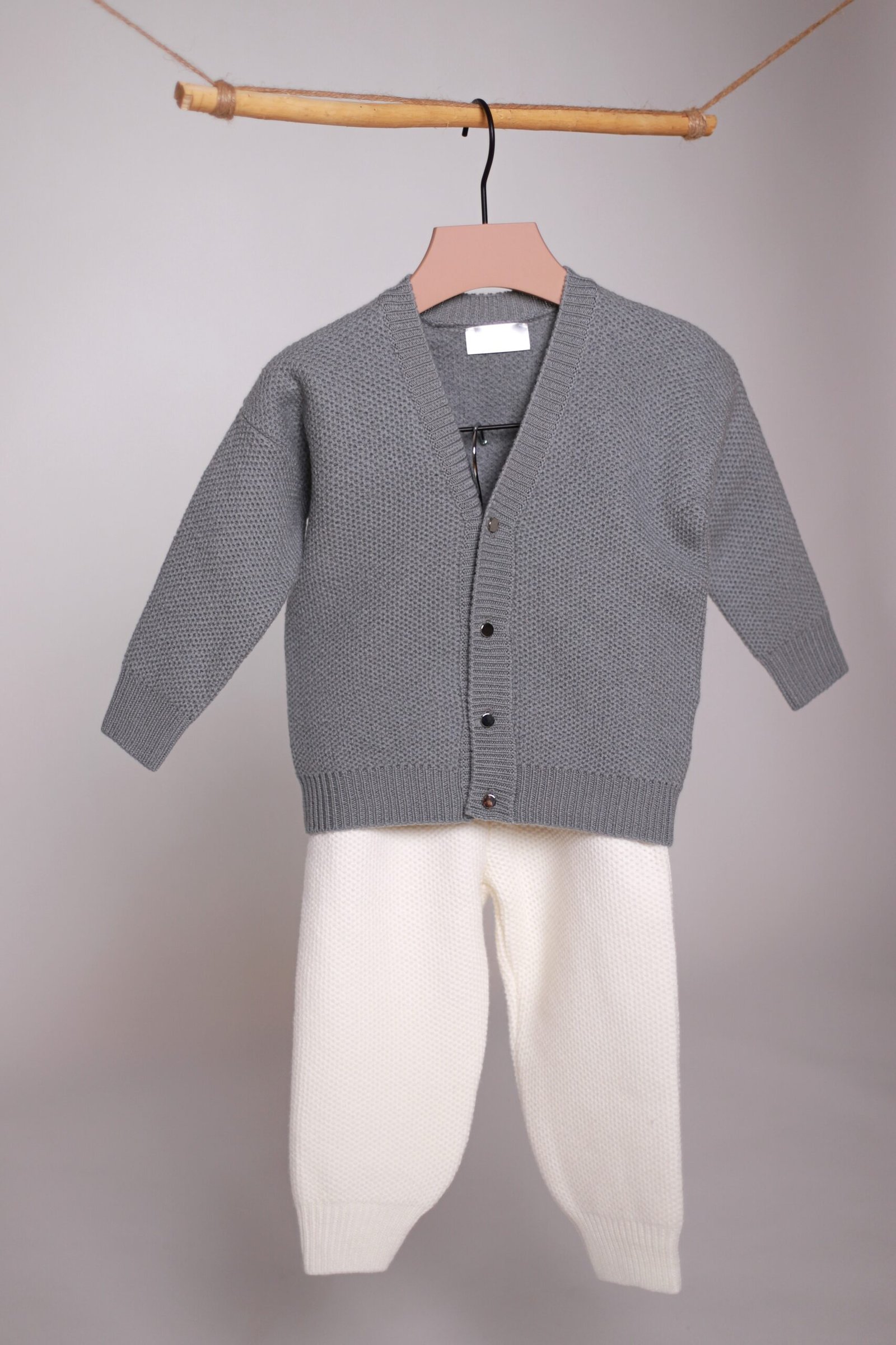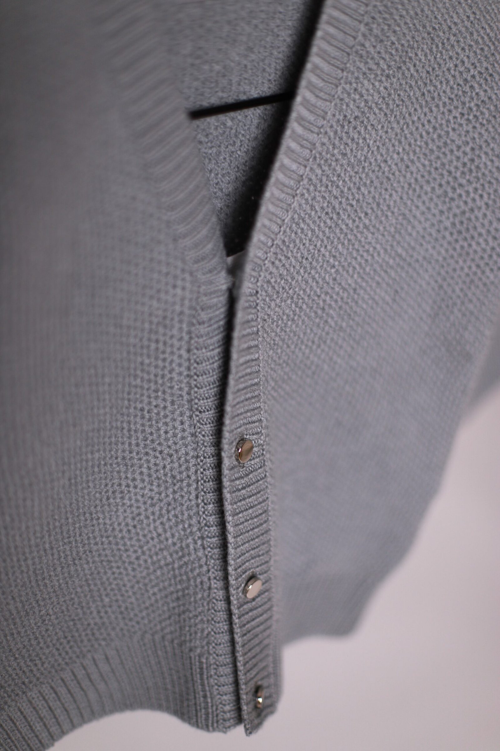 Merino vilnos megztinis, susagstomas keturiomis sidabro spalvos sagutėmis. Puikiai tiks vaikams, kurie labai nemėgsta, kuomet reikia rengtis per galvytę. Pagamintas iš ypatingai švelnių, aukščiausios kokybės itališkų merino vilnos siūlų. Tinkamas visais metų laikais – tiek kiek vėsesniais vakarais, tiek šaltomis žiemomis. Merino vilna šildo, tačiau neperkaitina, yra pralaidi orui, pasižymi antibakterinėmis savybėmis.