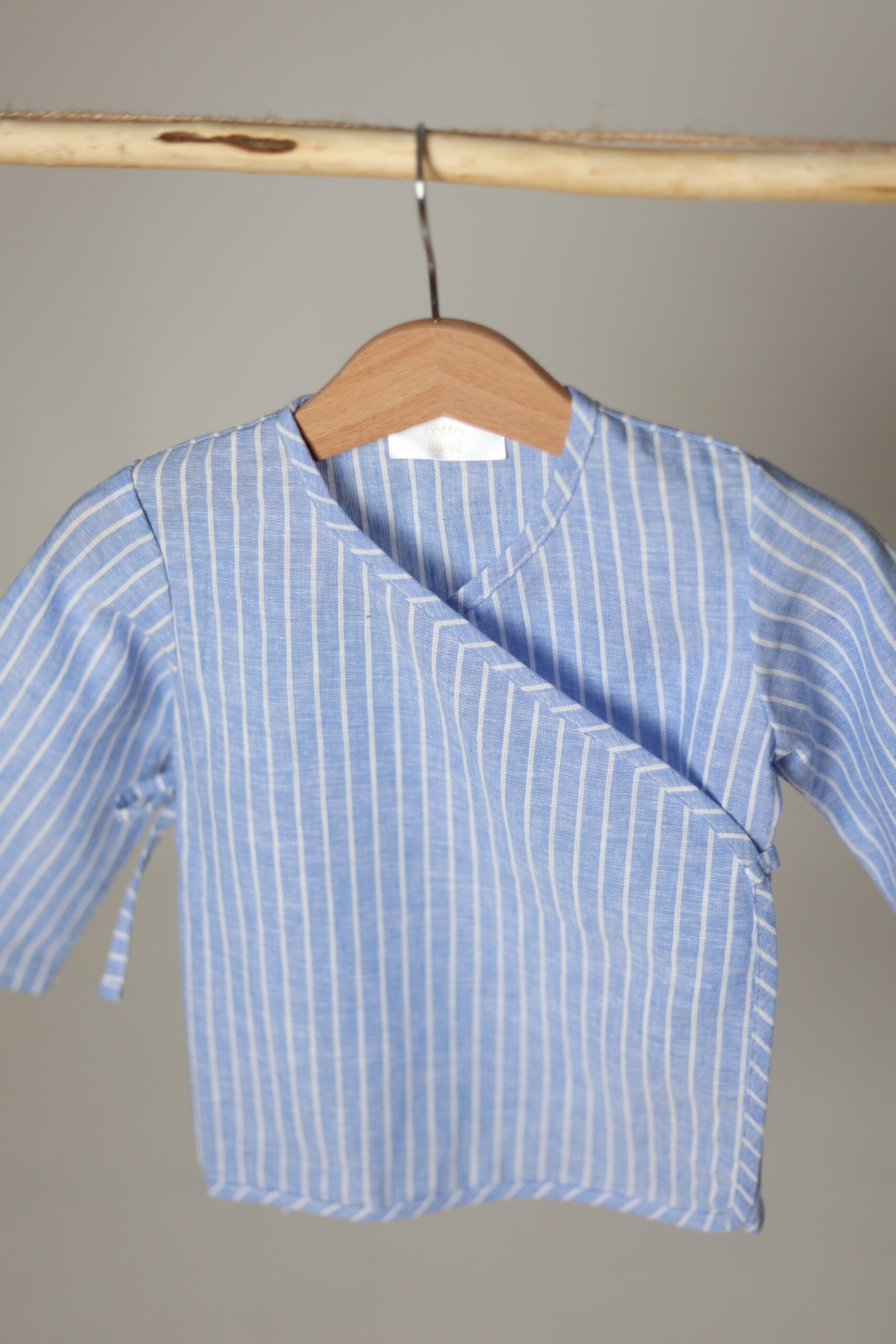 Susiaučiamas lino ir medvilnės švarkelis. Raištelis perkišamas ir apsiaučiamas per nugarą. Laisvo, nevaržančio stiliaus, platesnių rankovių.