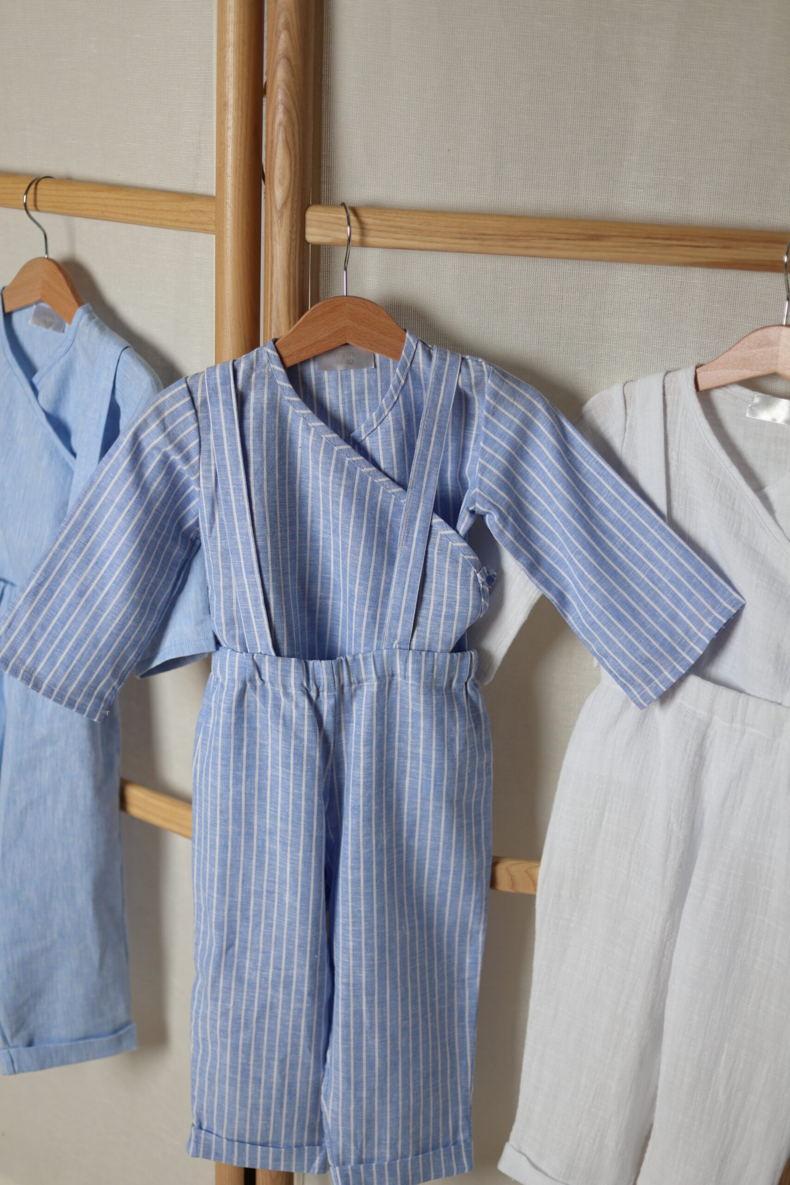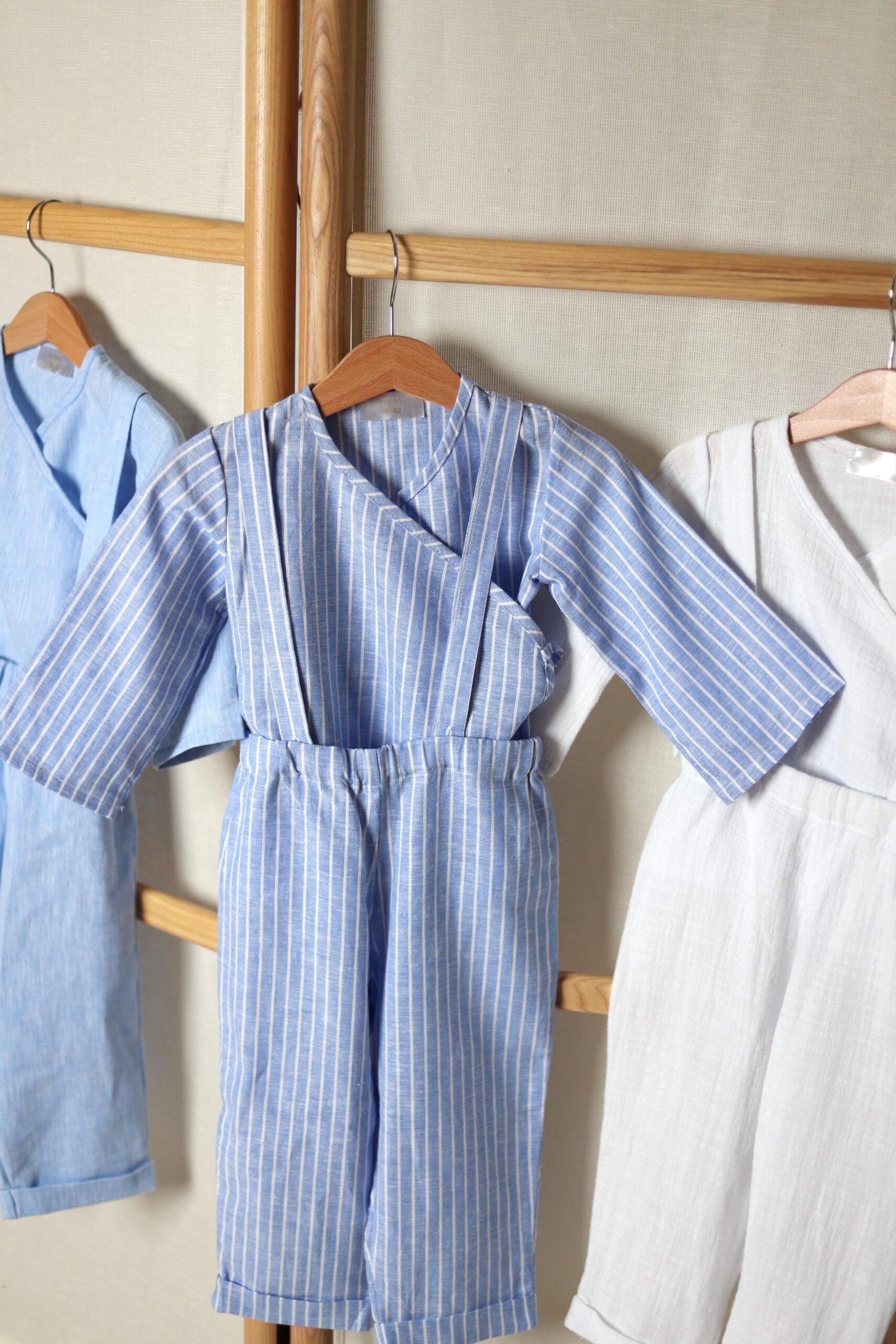 Susiaučiamas lino švarkelis, white stripes in blue