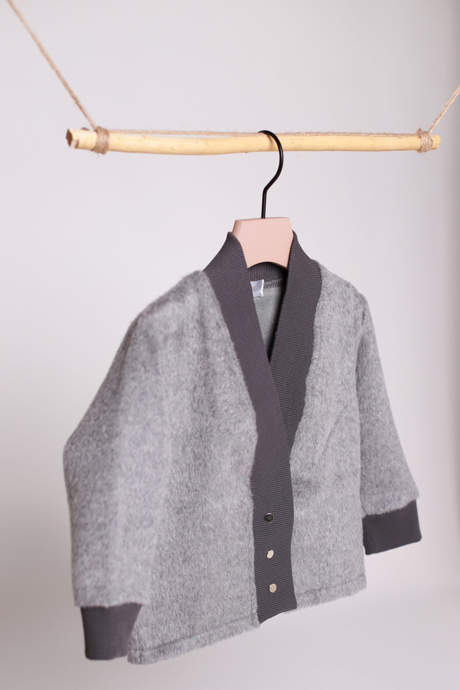 Jaukus ir pūkuotas išorėje švarkelis su vilna. Laisvesnio stiliaus, segamas trijomis spaudėmis.