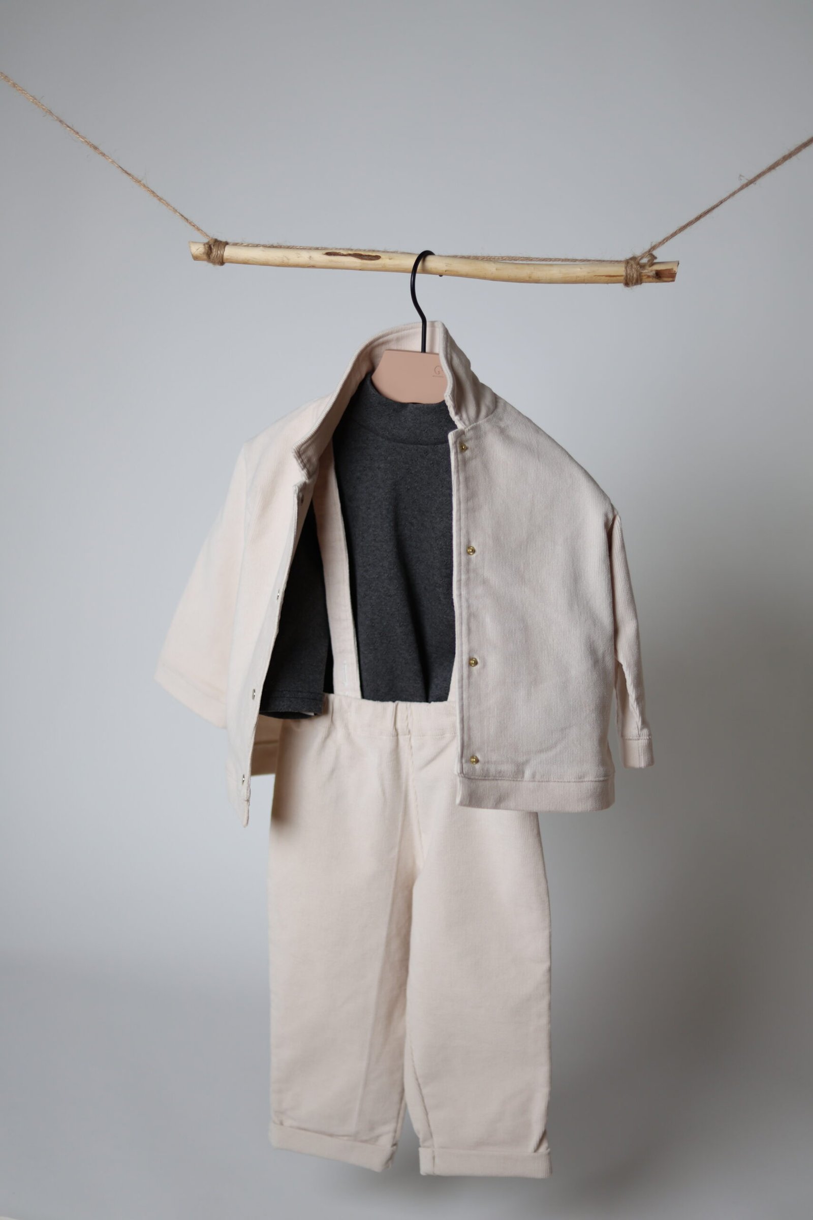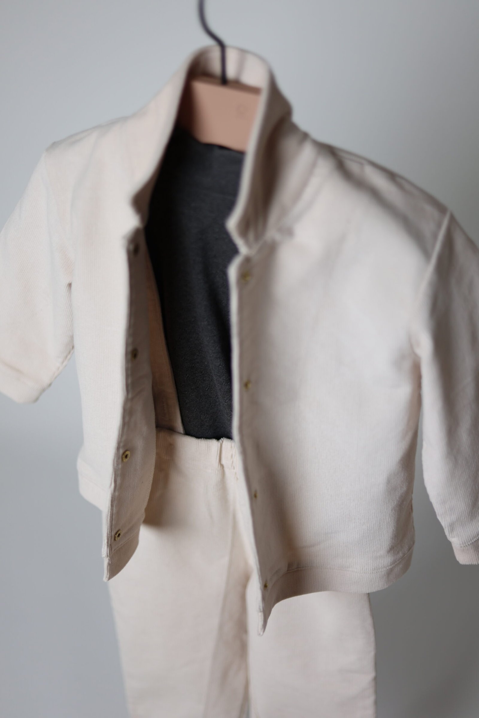 Klasikinis švarkelis su apykakle. Malonaus ir švelnaus velveto audinio, segamas aukso spalvos spaudėmis.