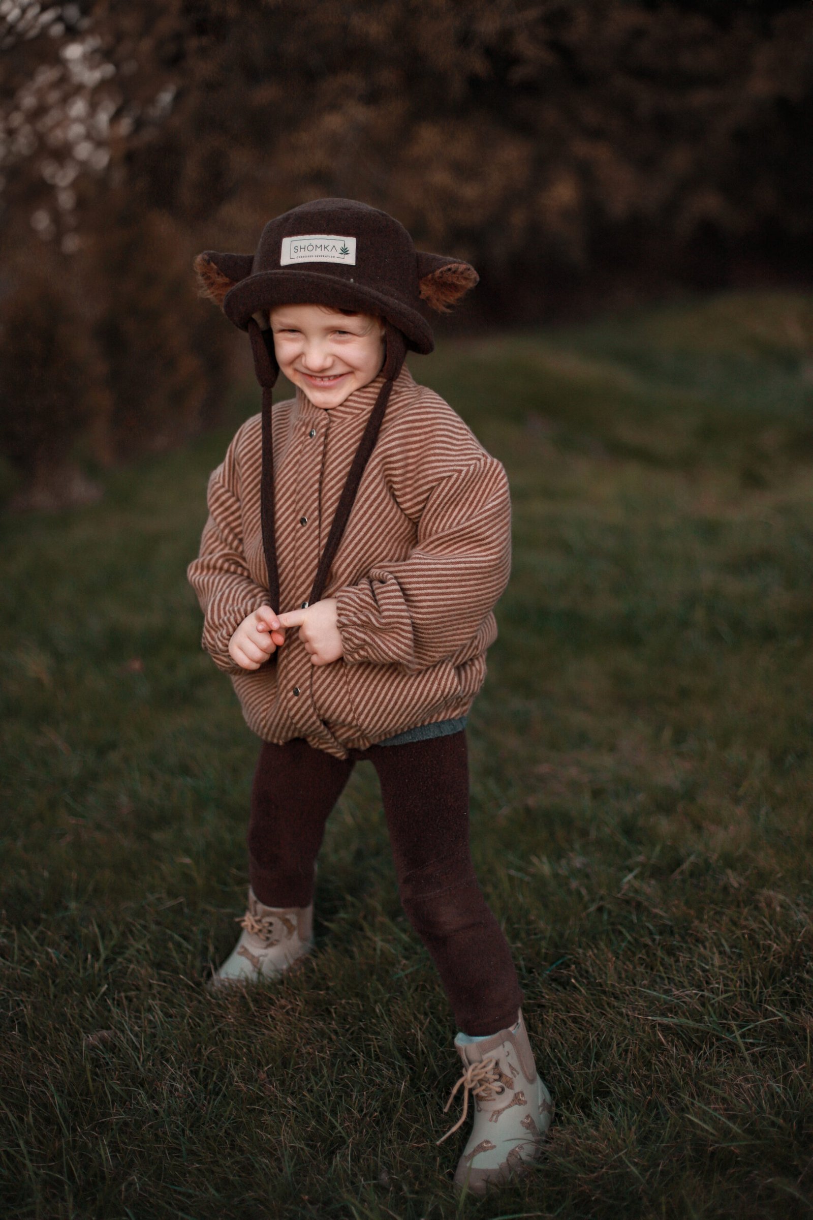 Ypatingai jaukus ir minkštas virgin vilnos ir kašmyro švarkelis su tamsesniais dryželiais. Apačioje bei rankovių galuose – gumelės. Su ovalia apykakle. Turi kišenėles.